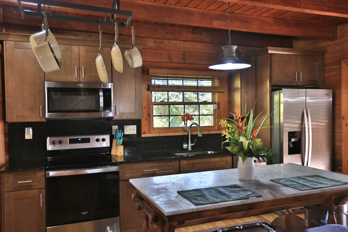 - Step onto the inviting front porch, where you can sip your morning coffee while enjoying the peaceful sounds of nature. The main home features two bedrooms and two bathrooms, with large windows that flood the rooms with natural light and offers beautiful views of the outdoors. A stone log fireplace serves as the focal point of the open kitchen, living, and dining area, creating a warm and inviting atmosphere. The kitchen features new appliances. The upper level, which was previously used as the owner's suite, boasts an open space with a spacious bathroom and a walk-in closet. It offers plenty of storage and workspace options but does not have walls for privacy, maintaining an airy, open feel. Step outside onto the generous wrap-around porches and take in the fresh air, perfect for relaxing or entertaining. The residence also features a new roof and HVAC system. It's a rare gem in a beautiful location! Conveniently located just minutes from the Greenways Trails, Florida Horse Park, shopping, restaurants, and hospitals, this property truly has it all.