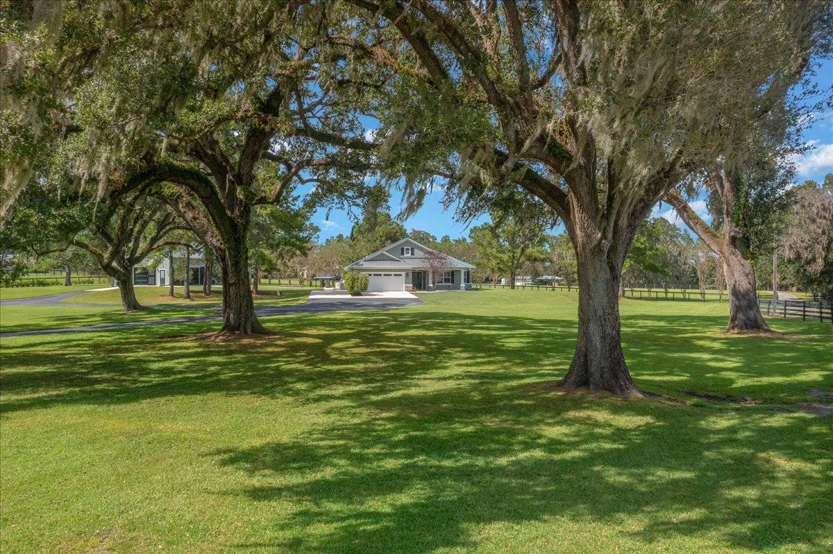 - Nestled on 5 magnificent acres adorned with towering oak trees and lush, manicured grass, this exceptional property welcomes you through a gated entry and paved drives that create an immediate sense of elegance and privacy. The setting exudes natural beauty and serenity — the perfect blend of Florida charm and refined country living.