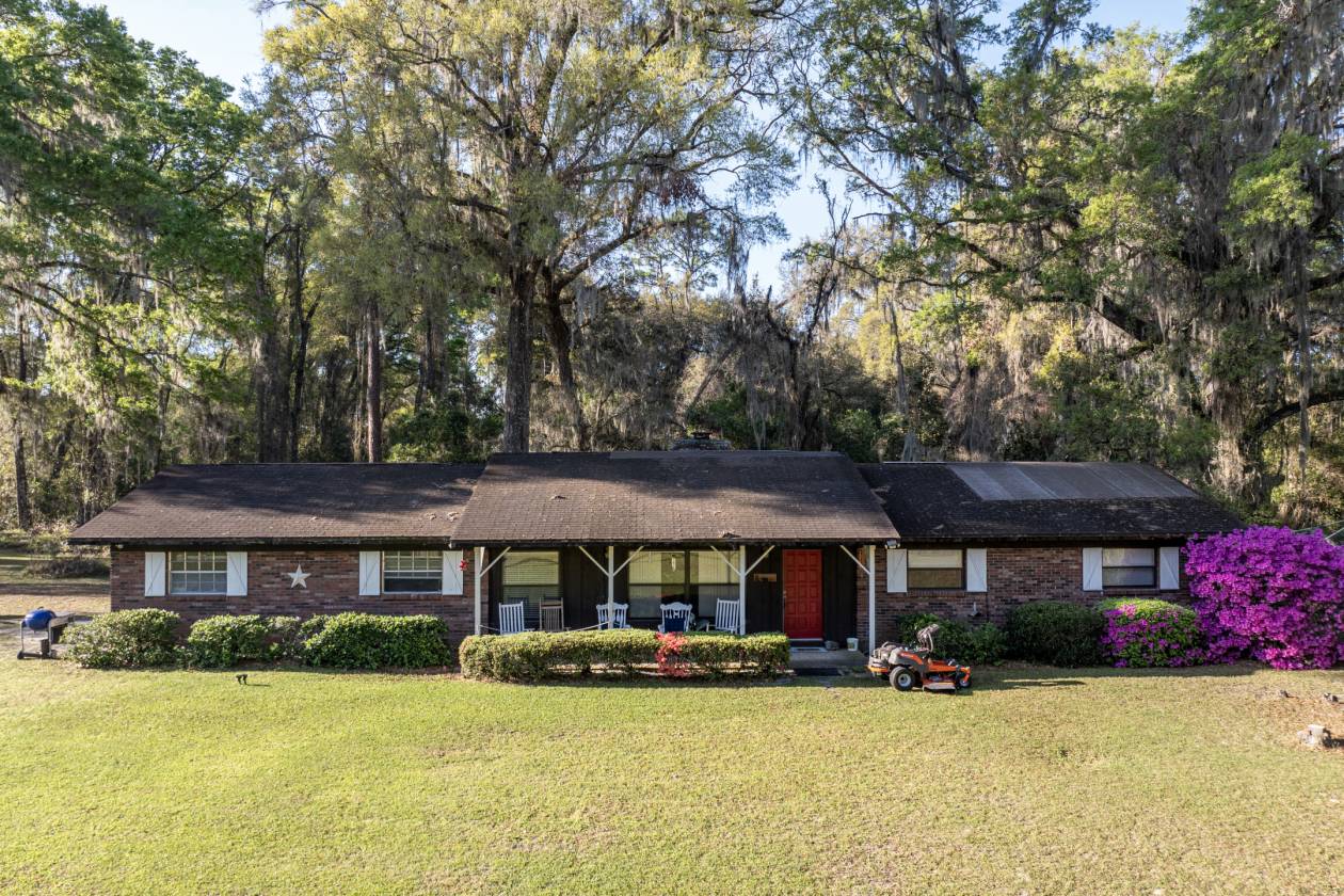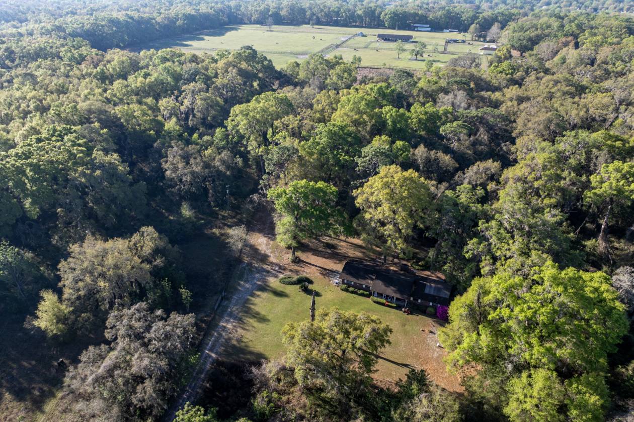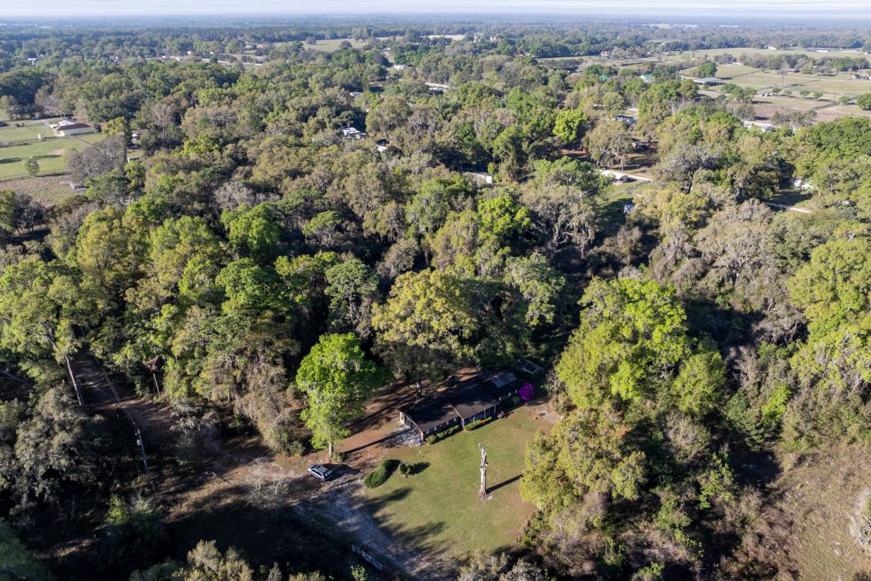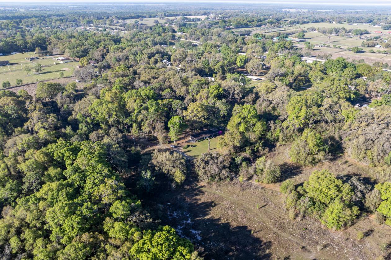 Tranquil Country Setting on 20 +/—acres. Conveniently located between Ocala and The Villages on Hwy 42, it offers easy access to dining, shopping, medical facilities, and entertainment. It is also close to the Florida Horse Park and the Florida Greenways and Trails. This 3-bedroom, 2-bath plus office home is secluded with beautiful Grandaddy Oaks and a natural Florida setting. Enjoy evenings on the screened-in back porch with relaxing views. The property is zoned A-1 so you can have horses, cattle, or chickens! There are no deed restrictions. Call today to schedule an appointment to view this property.