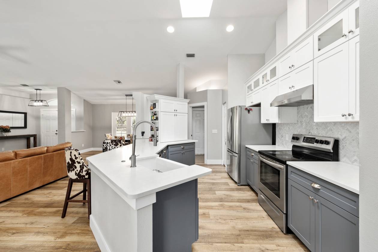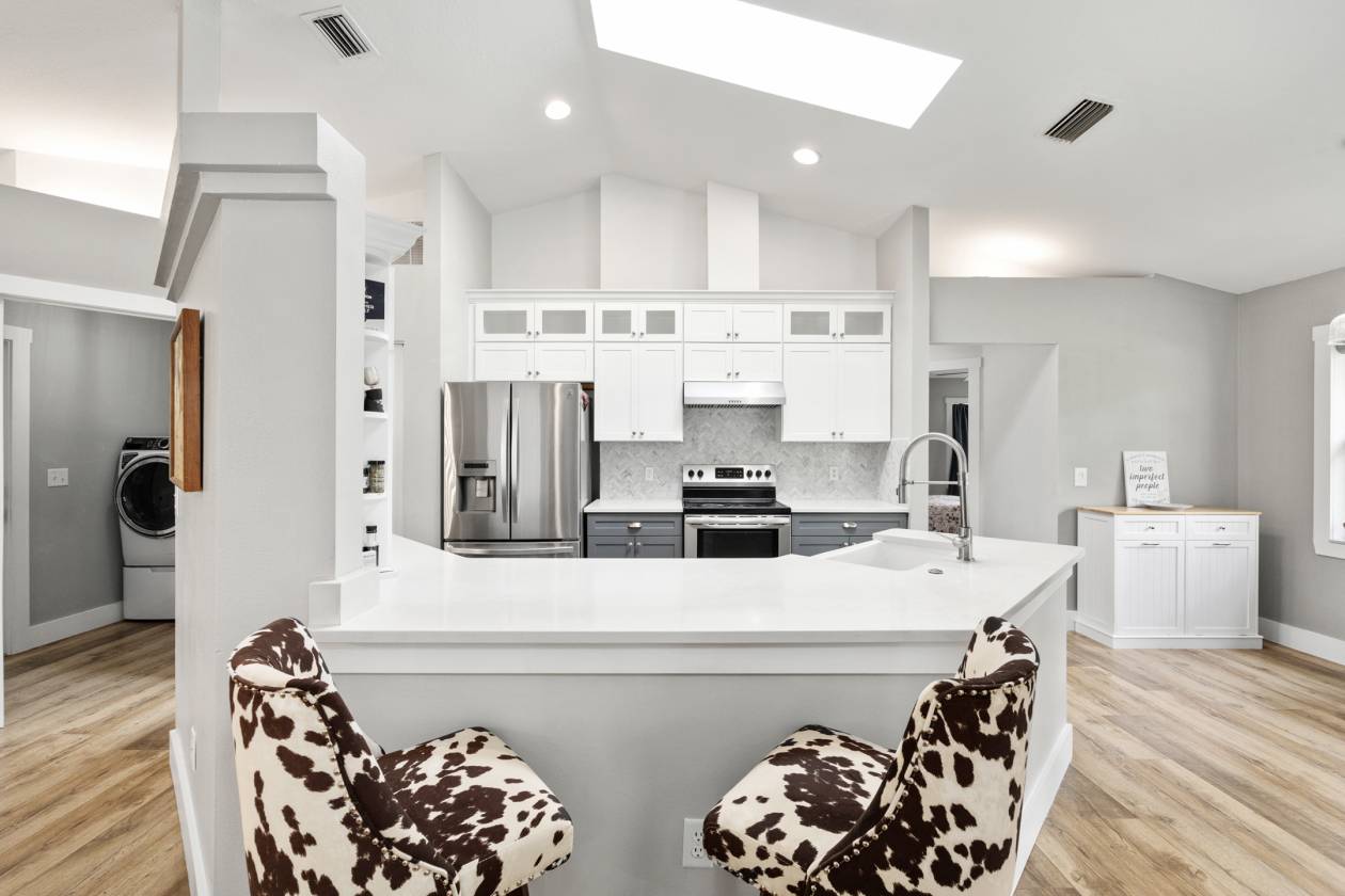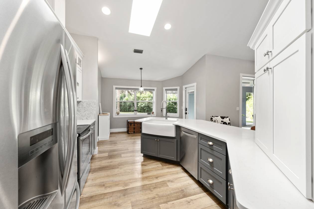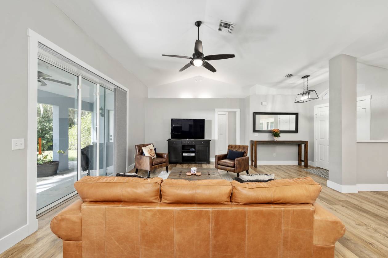 - The home has been updated with 3-bedroom, 2-bath home featuring a split floor plan, open-concept living, new flooring, fresh paint, stainless steel appliances, no carpet, and block stucco construction surrounded by live oaks. Roof and A/C were replaced in 2017, the well in 2019, and there’s a 2017 generator with a buried 500-gallon propane tank. The backyard is fenced for dogs, and an attached two-car garage adds convenience.
