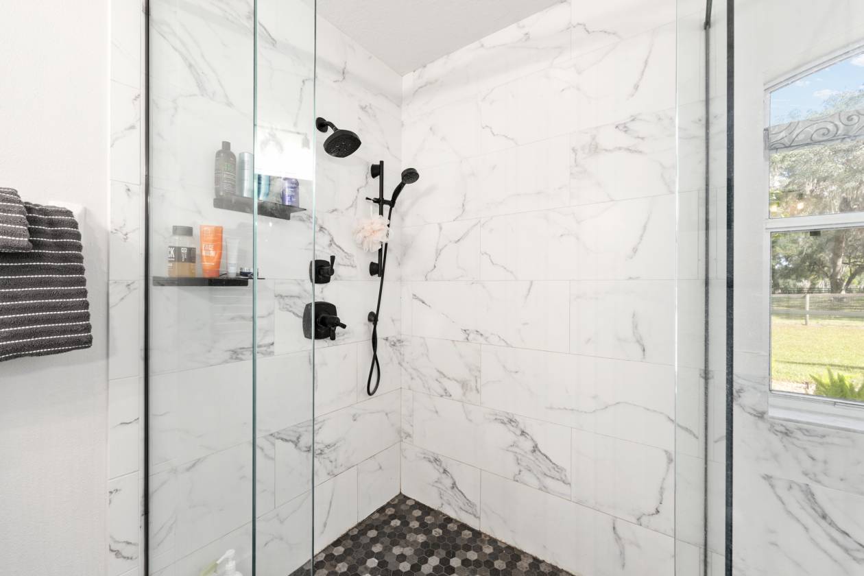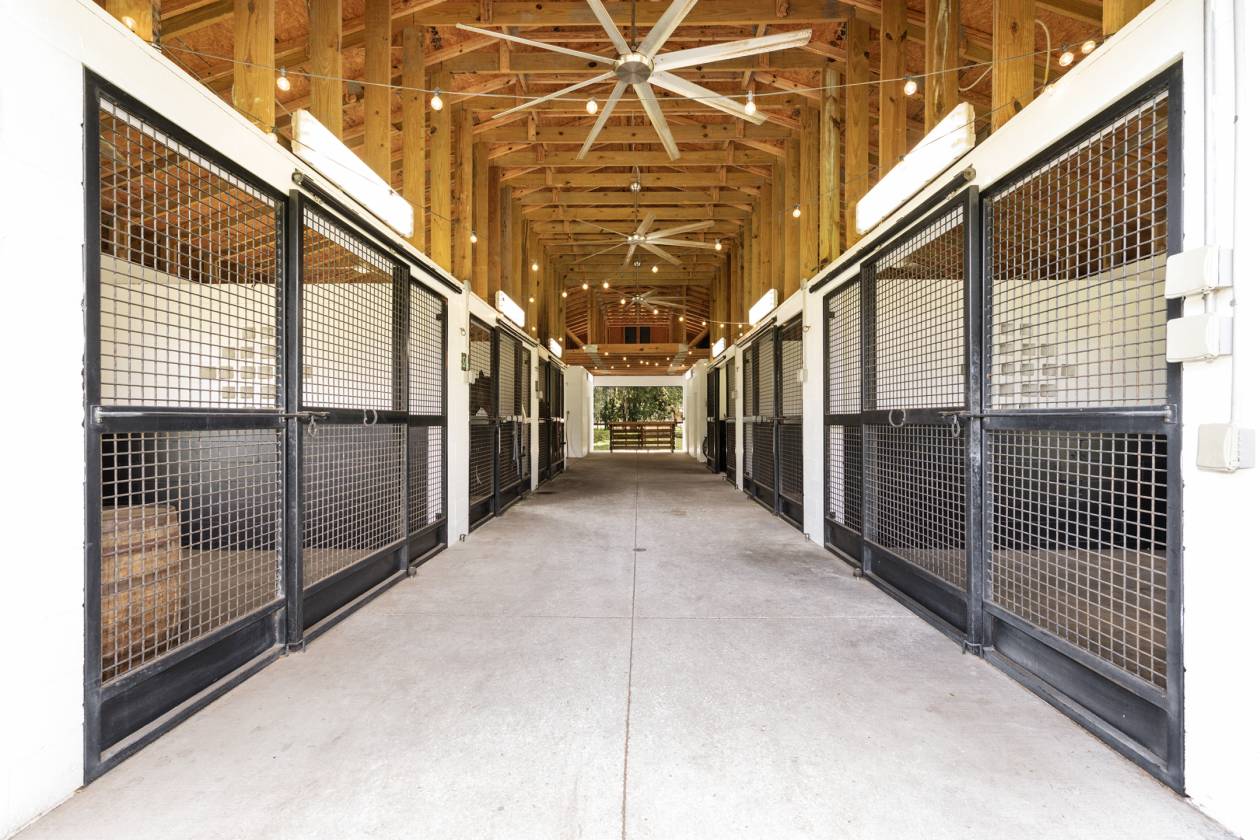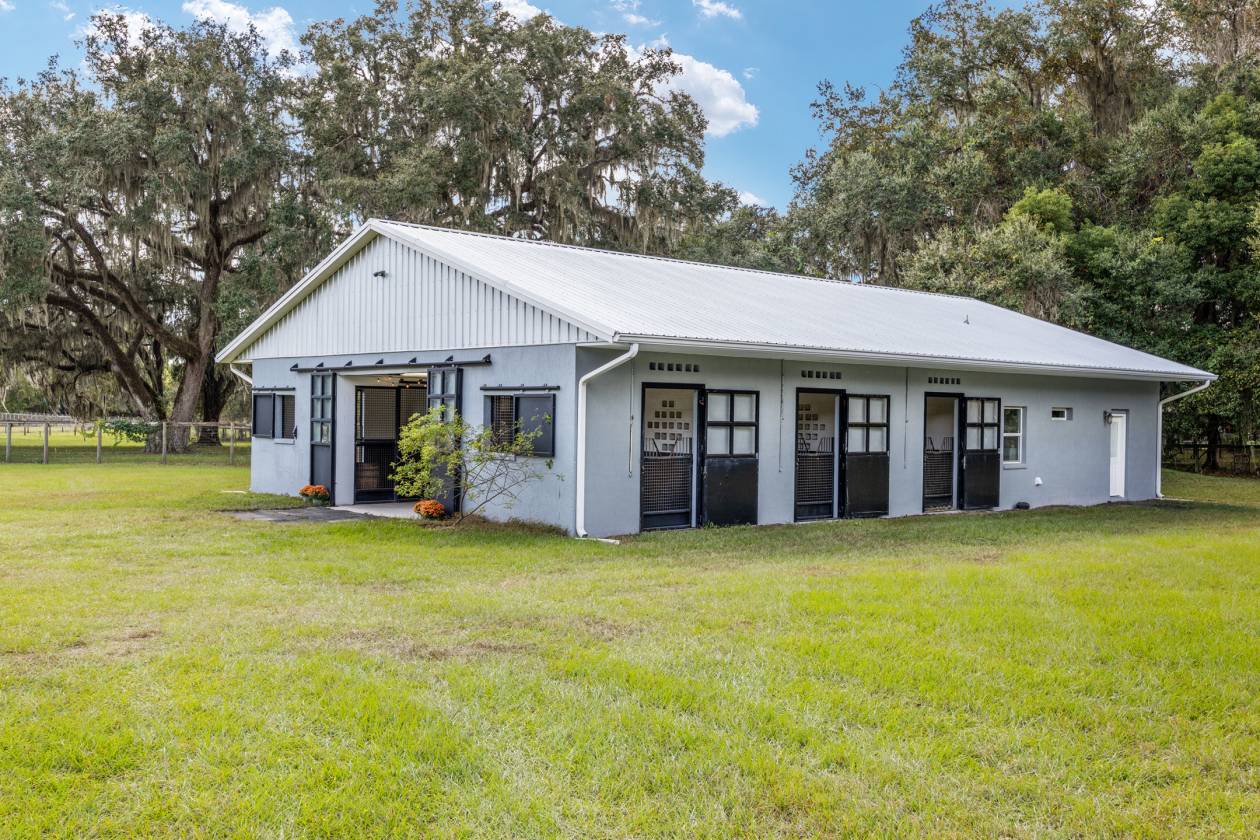 - Equestrian facilities include two exceptional barns: Barn 1 (2018) is a block, center-aisle design with six 12x12 stalls, wash stall with hot and cold water, laundry with washer and dryer, full bathroom, fly-spray system, tack room that could convert to a studio apartment, and feed/storage rooms with mini splits and tiled floors. Barn 2 (2017) is a wood-frame structure with a metal roof, currently offering three stalls with hay and trailer storage, easily expandable to nine stalls. Both barns feature wide aisles, excellent drainage, and large fans. Additional highlights include a riding arena all weather footing, two wells, separate meters for the home and barns, newly installed underground electric, new septic for the barn, and a movable storage shed. Ideally located just five miles from the Ocala Jockey Club, 10 minutes to Williston, 15 minutes to HITS, and 20 minutes to WEC, this turnkey property combines function, comfort, and beauty—a perfect setting where you and your horses will thrive.