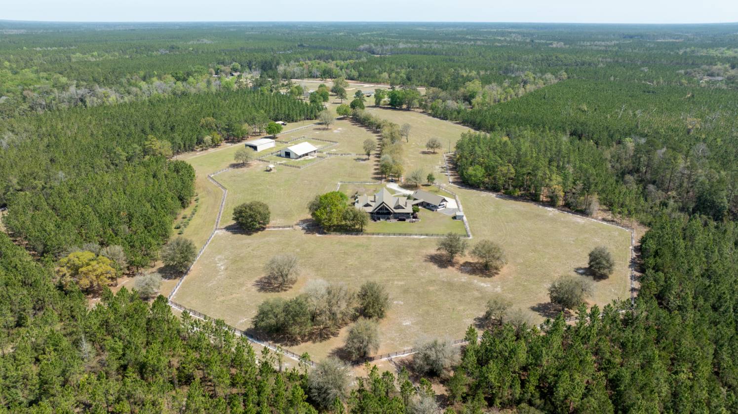 This riverfront property features an expansive, custom log home with luxury finishes, high end appliances and stunning views along the St Marys River. The home boasts 4,114 square feet of living area and another 3,913 square feet of covered porches and parking. The home was constructed in 2008 out of cypress and carries the accent of heart pine throughout the floors and ceilings. The floorplan features three bedrooms, three full bathrooms, a half bathroom as well as an expansive living room and loft. The living area features a large stone fireplace and the dining room features a stone fireplace as well. Both fireplaces are currently gas but they can both be converted to wood burning. The property features 20 acres of pasture that have been fenced for equestrian activities or livestock. There is also a large shop building, greenhouse, and multiple barns for horse stalls, equipment, and hay storage. The timberland component features planted pines and mature hardwoods along the 1.2 miles of riverfront. The riverfront features excellent fishing, kayaking, and wildlife viewing opportunities along the St Marys River which leads to the Atlantic Ocean. The diverse ecology of this property and navigable river access make this investment opportunity extremely rare.