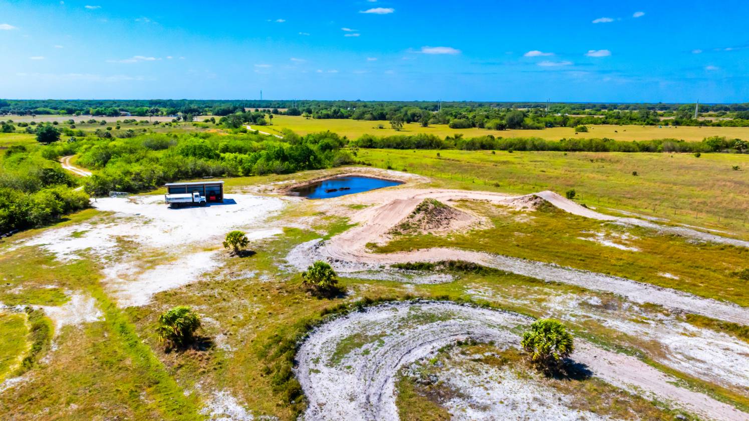 Rare opportunity to own 40.9 fully usable acres in a highly desirable and private area of SE Okeechobee, accessible from both SR710 and SE 128th Avenue. Agriculturally zoned and improved, ready for a wide variety of uses, from building a Dream Farm, Ranch, or Homestead to establishing an Agri-Business or holding for further investment. Improvements include a 6” screen and gravel PVC well with a 5HP submersible pump, 315-gallon bladder tank, 400AMP electrical service (2x250 AMP breaker meter combo panel), and a 225 AMP 12-circuit load center. A 36 x 24 three-sided equipment building. The land currently features a professionally designed Motocross Track by former Pro Rider Robby Marshall of Ram Trax Development and a separate Turn Track. Approximately 12± acres are untouched cattle pasture. Recent survey available. Not in an HOA or restricted community. Very versatile, turnkey property. Use as is or develop. Two separate entrances to property. Annual cattle lease is currently in place.