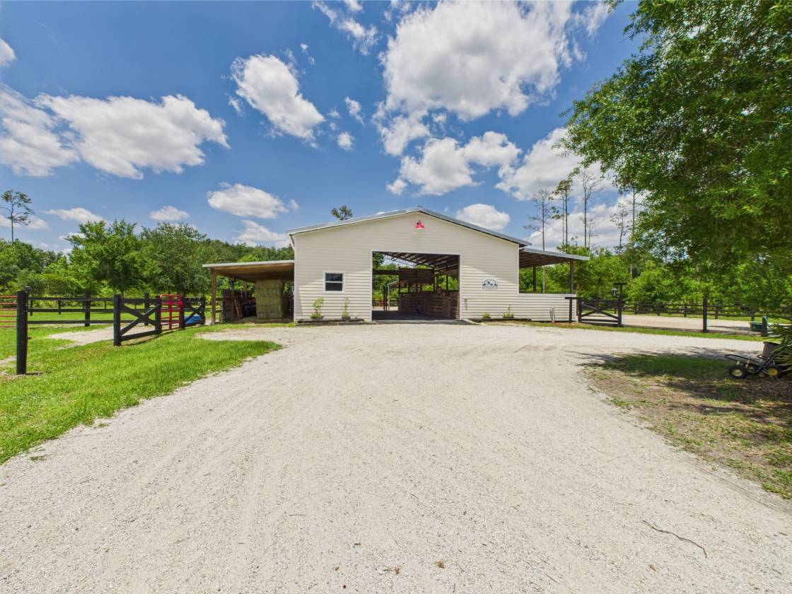 Horse Enthusiasts Dream! Custom Home on 5+ acres in a gated community that is truly a Hidden Gem. This 3/3 is perfectly laid out with Modern Design and Rustic Charm. Enjoy the peaceful view on the screened in porch with tongue and groove ceilings. The Serenity offered on this 5.16 acre property will make you want to stay. This Pristine property has large 6 stall horse barn, tack room, 2 wash/grooming stations, 4 engineered paddocks and arena, and access to hundreds of miles of riding trails with the push of the button. Indian Hammock has over 3,000 acres of land with a private landing strip/hangar, lodge w restaurant and pool, hunting, skeet shooting, rifle range, tennis/pickleball courts, over 100 miles of trails, and so much more!