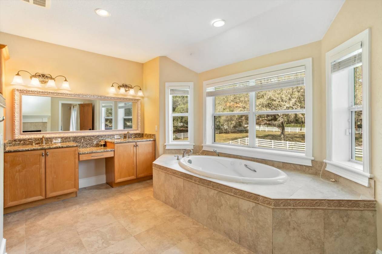 - • Primary suite retreat with sitting area, 2-sided fireplace, spa-style bath + oversized closet