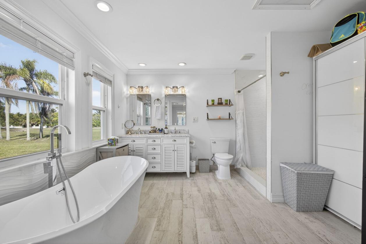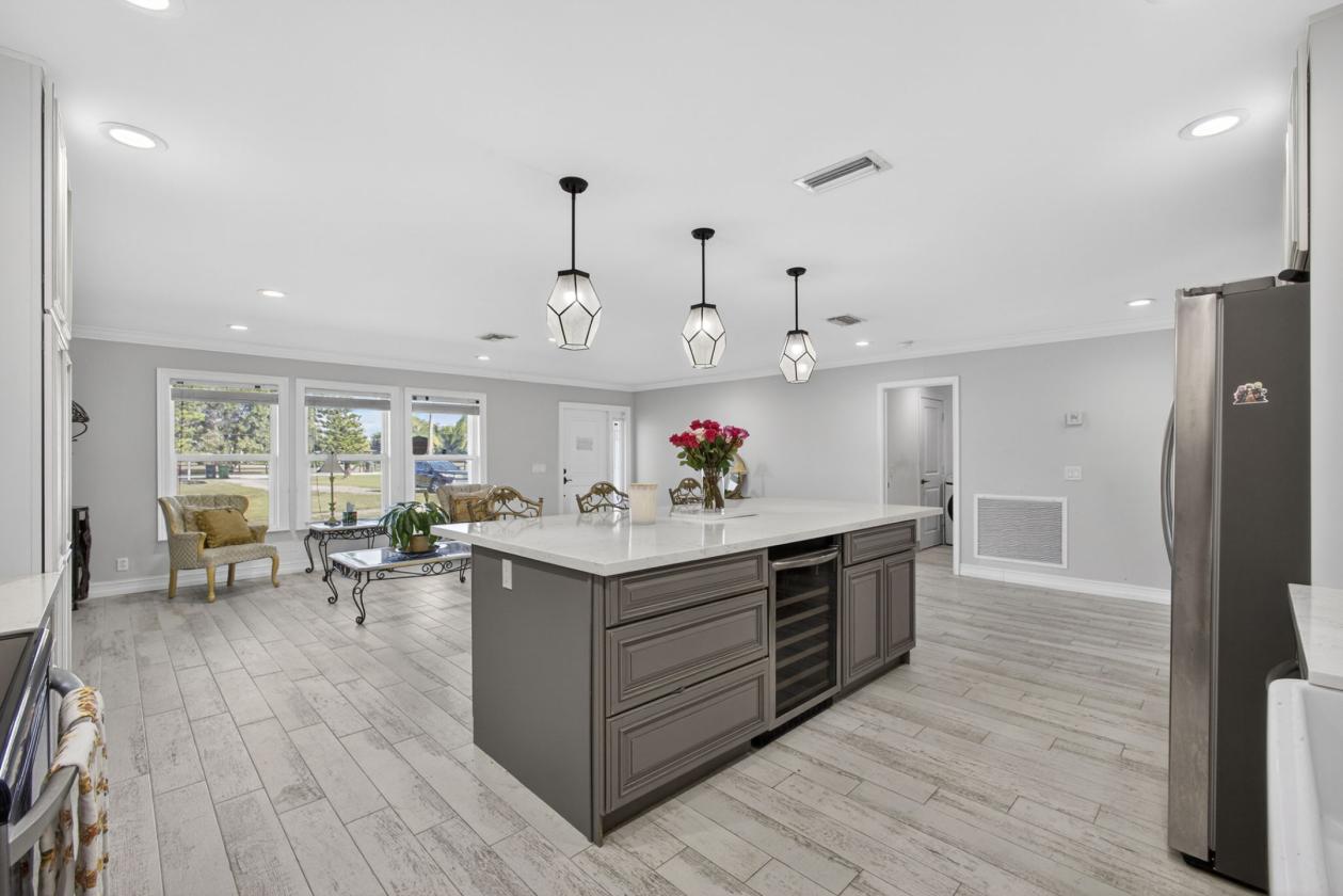 Welcome to Rustic Ranches in Wellington, the polo capital of the United States where luxury living and equestrian charm come together on 5 beautifully cleared acres with City water ready for you to create the horse farm of your dreams. Located minutes from Wellington preserve and only a five-minute golf cart ride to Wellington International. Step inside this fully remodeled, open-concept masterpiece, and you'll instantly feel at home. Offering 4 bedrooms, 4 baths, a game room, and a dedicated office, this 2,748 sq. ft. residence has been reimagined with impeccable attention to detail. Impact windows, recessed lighting, a brand-new kitchen and baths, and stunning plank tile flooring set the tone for modern comfort and style.