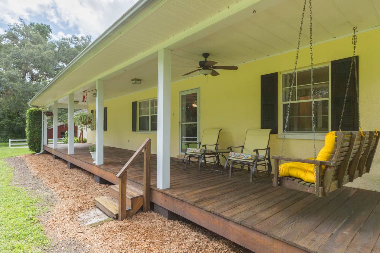 Come experience this hillside 12.72 ACRE estate situated just 3 miles from I-75 offering easy access to Tampa and Ocala. This custom-built, one owner ranch-style home on 12.72 acres offers elevations over 150' dotted with majestic grandfather oaks, fertile pasture grass, and paved county road access. Zoned Agricultural-Residential with NO HOA or CDD FEES! This is the first time this well-maintained home has been for sale. The property has a winding crysral clear spring fed CREEK, with a bridge, that flows through the property. The RANCH-STYLE HOME is approximately 1,856 sq ft with 3 bedrooms, 3 baths plus a BONUS ROOM (all under air). The bonus room, which is located off the double car garage, offers a full bath and private entrance making it perfect for an IN-LAW SUITE, FITNESS ROOM, or HOME OFFICE. The home offers an open-concept floor plan with living room, dining room, kitchen and a split-bedroom layout designed for privacy. The long, wide, relaxing 8'x 52' front porch is the perfect place for drinking your morning coffee while watching the birds and enjoying the peace and quiet of this beautiful homestead. Home is equipped with extra insulation which contributes to lower electric bills. A deep well supplies excellent water to this home and property. The PROPERTY spans 12.72 +/- acres of cleared, high and dry pastureland, entirely fenced and crossed fenced in to 4 paddocks. Paved road county access with two separate entrances, ensures easy and convenient entry into the property and barn area. Agricultural zoning allows you to bring your horses, livestock, animals, start your own hobby farm or just escape life’s “hustle and bustle” and come home to this peaceful setting. Mature trees, open pastures and a pristine clear water creek that runs through the property make this property unique. It’s conveniently located to restaurants, shopping, medical facilities, major cities, and other attractions. This property is located just (15 minutes) from Historical Downtown Dade City, (25 minutes) from Tampa Premium Outlets, with all the restaurants & shopping you could possibly want, (40 mins) from Downtown Tampa, and (1 hour) from the World Equestrian Center in Ocala. The 44'x40' BARN features concrete center aisle, tack room, feed room, high roof, electricity, water, and is suitable for storing RV, equipment, feed, or other supplies. Barn could easily be converted to a 4 STALL HORSE BARN. Barn also offers a 30-amp RV hookup. Gardener's shed (11’ x 16’) includes covered storage for lawn equipment. Don't miss the opportunity to own this home and property that has not been previously offered for sale. This is a must-see property! Schedule your private showing today! Co-owner of this property is a licensed Florida Real Estate Sales Associate.