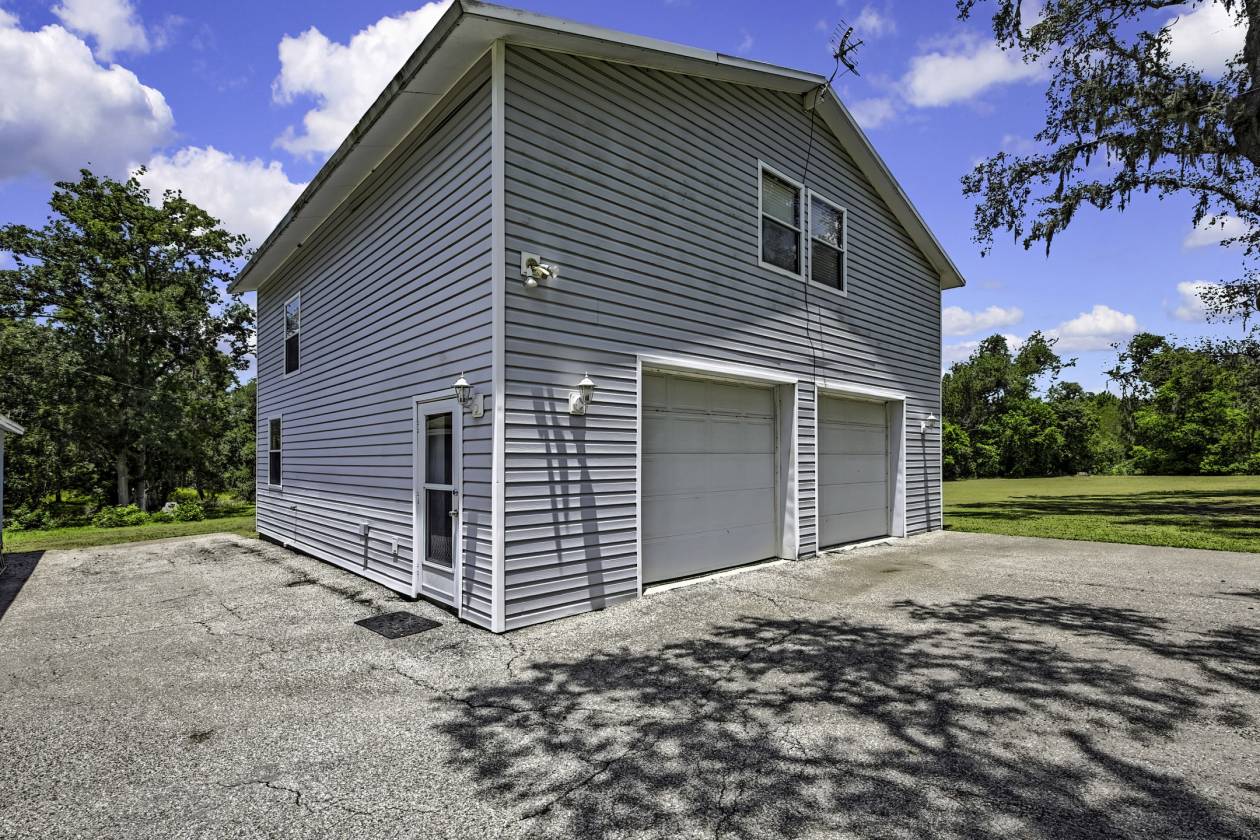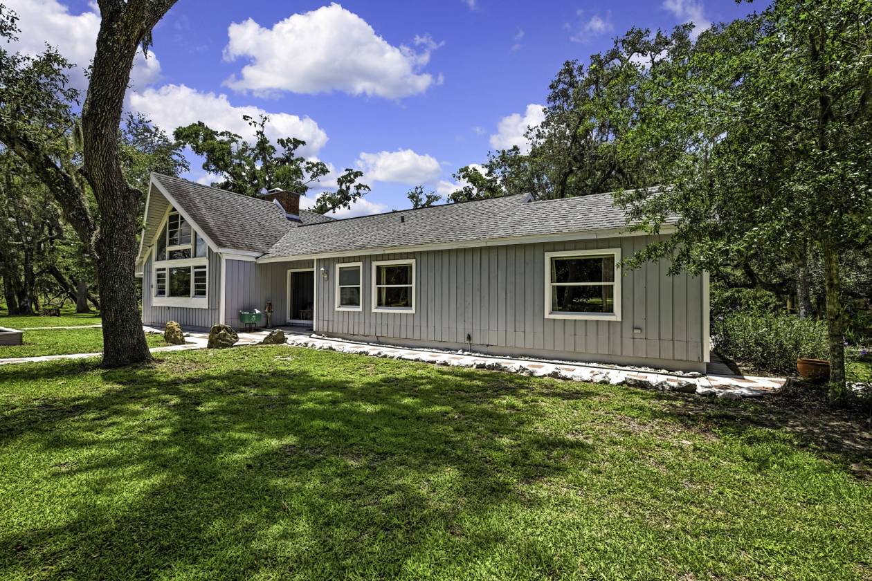All Reasonable Offers Considered! Amazing Opportunity! Country Living at its Best! Close to Ocala and I-75. Private Gated Estate on Nearly 23 Acres | Ranch-Style Home | Guest Studio | Barn | Stocked Pond A True Country Retreat with Endless Possibilities! Welcome to your dream estate! Nestled on 22.98 acres of serene countryside, this extraordinary property offers the ultimate in privacy, peace, and potential. Enter through a distinguished brick and wrought-iron gated entrance and travel along 800 feet of paved driveway, enhanced by an additional 200-foot circular drive lit by a charming street lamp—guiding you home beneath a canopy of majestic oaks. At the heart of the estate lies a handsome A-frame ranch-style home featuring classic cedar lap siding and a well-thought-out split-level design for privacy and comfort. The home sits on 8 cleared acres and showcases tranquil views of nature and a stocked pond. Inside, you’ll find 3 bedrooms, 2 bathrooms, a spacious loft, and two cozy brick wood-burning fireplaces—one in the living room with soaring vaulted ceilings and yellow pine paneling, and one in the private master suite. The inviting foyer welcomes you with striking Pecky Cypress walls, while the kitchen features a breakfast nook, gas range, electric oven, and easy-to-maintain Formica counters. The master bedroom includes its own entrance, fireplace, French doors to the backyard, a private bath, and stacked washer/dryer. The second bedroom offers another washer/dryer hookup, and the third bedroom opens to the outdoors via sliding glass doors leading to a 16' x 40' screened wood deck—perfect for enjoying the sounds of your very own wildlife sanctuary. This stunning estate is home to wild turkeys, black-bellied whistling ducks, deer, and even the occasional bobcat family. The pond is stocked with tilapia for your private fishing pleasure. But that’s not all—this property offers impressive outbuildings to support your hobbies, guests, or business ventures: • A 20’ x 24’ detached 2-car garage/workshop with washer/dryer hookup and water heater. • A 30’ x 30’ two-story garage built in 2000, complete with an upstairs studio apartment, full bathroom, Berber carpet, built-in desk, generous closet space, and generator transfer switch—ideal for a guest house, gym, home theater, art studio, or office. • A massive 30’ x 60’ barn on approximately 3 cleared acres with tack and dry rooms, perfect for livestock, horses, or a thriving garden. The land features a mix of wood and chain-link fencing, with 250 feet of frontage along Highway 98, and even a variety of landscaping that includes Florida Muscadine grapes. The northern boundary adjoins Peterson Park near the Withlacoochee River, perfect for kayaking, canoeing, and fishing. Additional Features: • Main home A/C (approx. 2018) • Garage A/C (approx. 2019) • Roof (approx. 10–12 years old) This is country living at its finest—a rare opportunity to own a sprawling, versatile estate with room to live, grow, and thrive.
