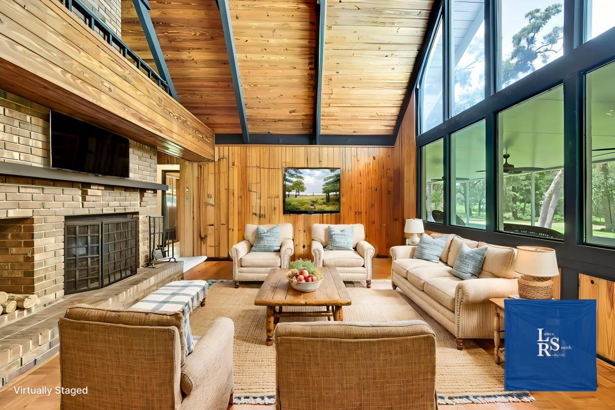 - 2 brick/wood-burning fireplaces (living room & primary suite)