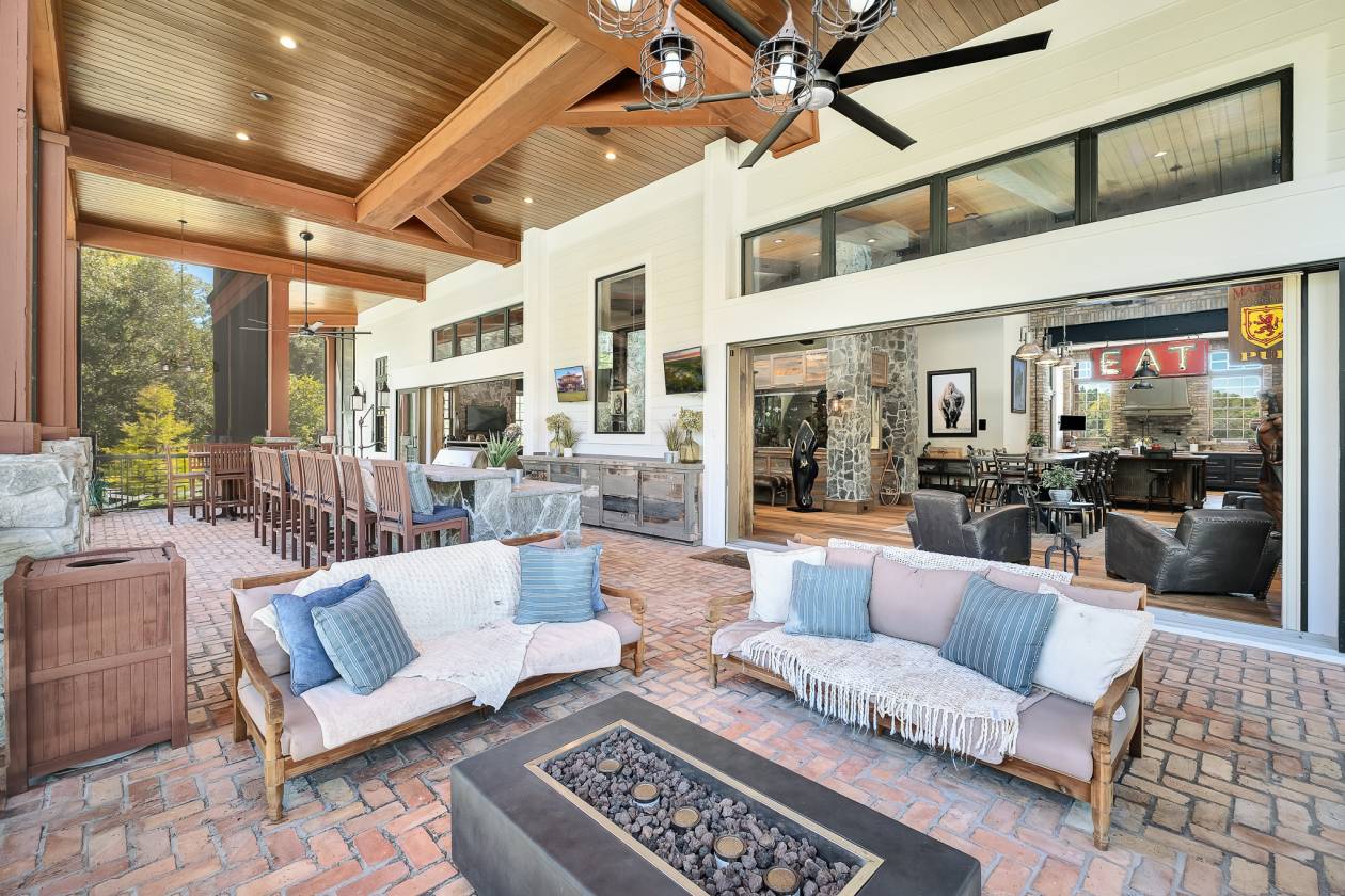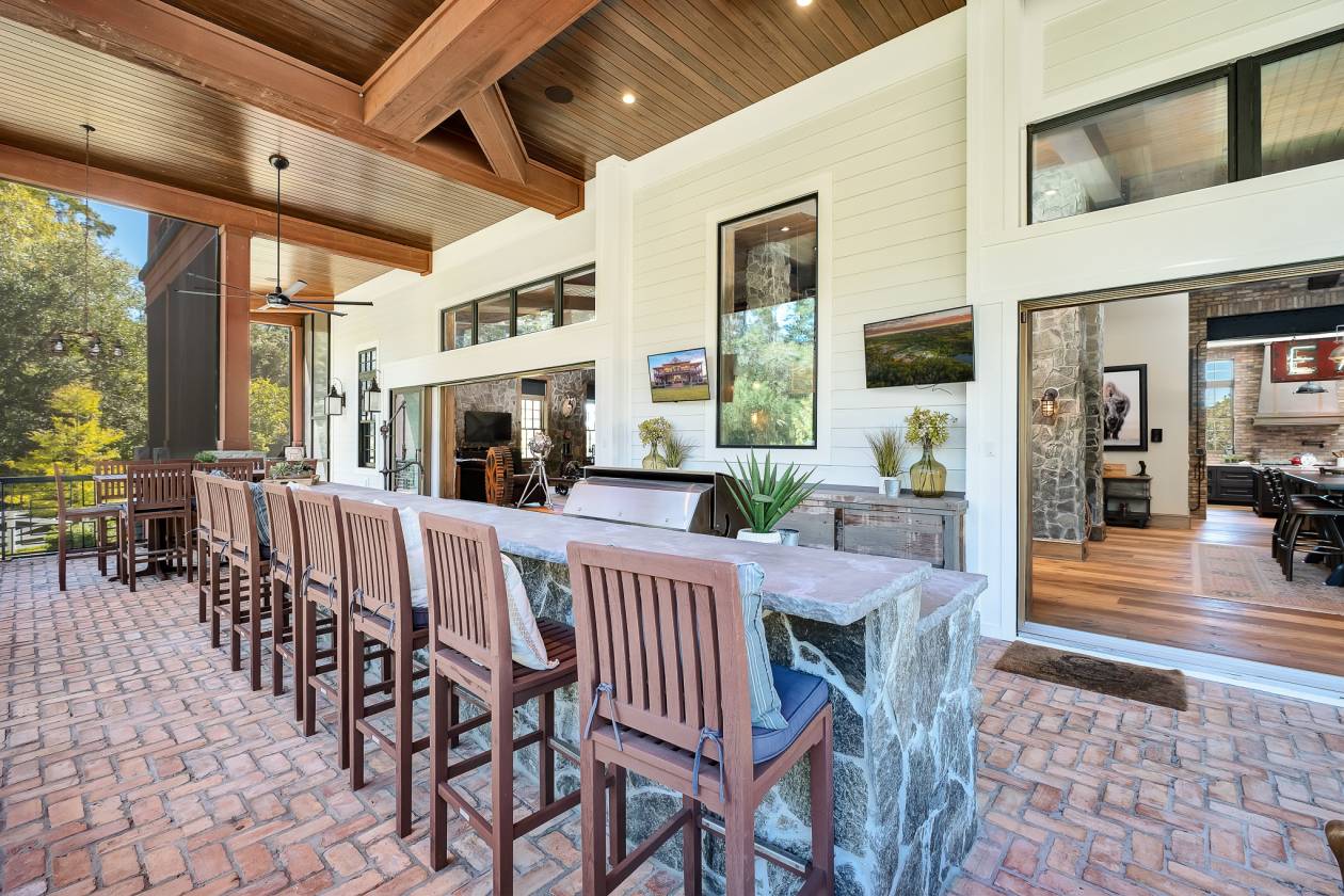 - Expansive porches and covered seating areas provide inviting spaces to take in the property’s tranquil views. A swim-spa with bar-like seating on the outside, offers year-round enjoyment. The sellers can provide architectural plans for a pool and second outdoor kitchen, adding further dimension to the estate’s outdoor living experience.