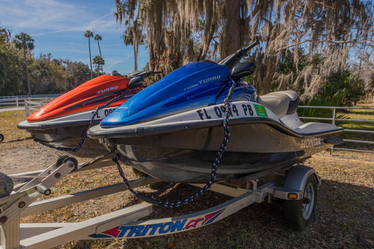 GORGEOUS RIVERFRONT CUSTOM HOME ON 22 ACRES WITH 1,729 FEET ON THE ST JOHNS RIVER! Gated entry with long winding driveway where you will pass 2 barns (a 2 stall & a 3 stall), 3 gated fully fenced pastures leading to a spectacular 3BR/2BA, 3092 SF home on the river with a boat dock that includes a boat lift & 2 jet ski lifts to store your Hurricane boat & your 2 Honda jet skis that convey! This home is being offered fully furnished, turnkey condition that includes all furnishings. Not only do you get a boat & 2 jet skis, you'll also get an electric golf cart, Kubota Tractor riding mower, shed full of tools, a chicken coop & much more. Circle driveway leads to over 1300 SF of wrap around porch with teak wood deck & a summer kitchen. Enter into the Great Room, you'll say WOW when you see the high wood ceilings with wood beams, clerestory windows, magnificent stone fireplace & 4 sets of French Doors leading to the wraparound porches.Owners built this home to see the river from every room!