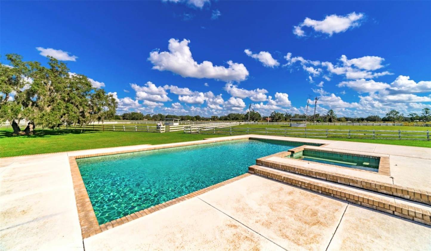 Just under 10 Acre Spectacular Equestrian Estate with amazing sunsets! This magnificent property features a total of 2 Residences totaling over 6000 sq ft. under roof, 2 block horse barns with 7 stalls and a gorgeous 40x20 pool, spa & pergola with built in grilling and entertaining deck. The main residence is a lovely 2 bed, 2 bath block home/metal roof with an oversized 31x21 three car garage/workshop and porte-cochère. The main residence features European charm with marble counter tops, stainless appliances, wood floors, tile floors, custom woodwork, pedestal sinks, a claw-foot tub, walk-in shower and breathtaking views of the property. There are 3 stalls and a breezeway at the main residence. On your way to the main barn, the courtyard has a custom pool, spa, deck, grilling area with kitchen and a pergola. The main barn features a metal roof, 4 stalls an aisle, 3 wash racks with Hot & Cold, a finished tack/laundry room under air with a full sink. The air-conditioned finished office has, 2 baths, a kitchenette, wood floors, custom floors, custom wood work, pedestal sinks and a breezeway to the barn. The property is fenced, cross-fenced, has 2 run-in pole barns, 20x8 shed that matches houses out back and a 8x10 feed shed. 4-5 paddocks, water in each paddock, a parking pad, manure and shavings storage. You really must see this property to appreciate all it has to offer. Ideal Location! Less than 20 miles to the Ocean!