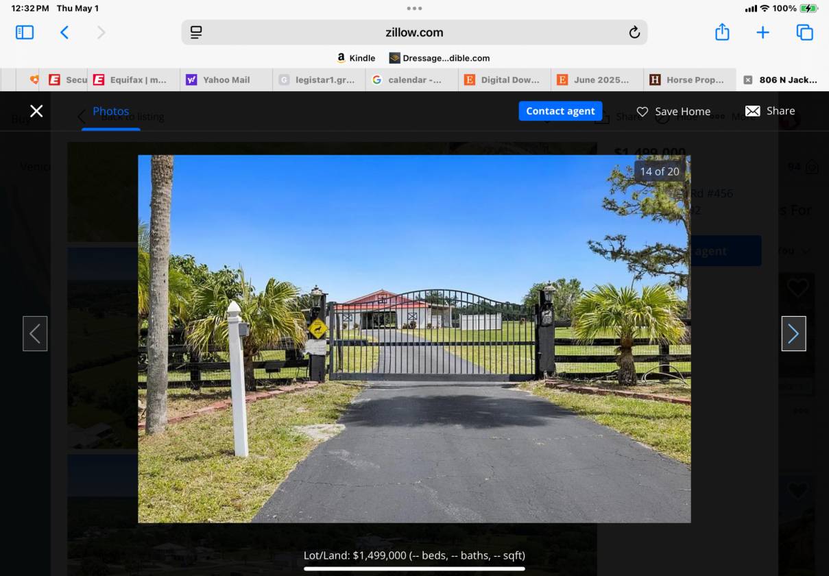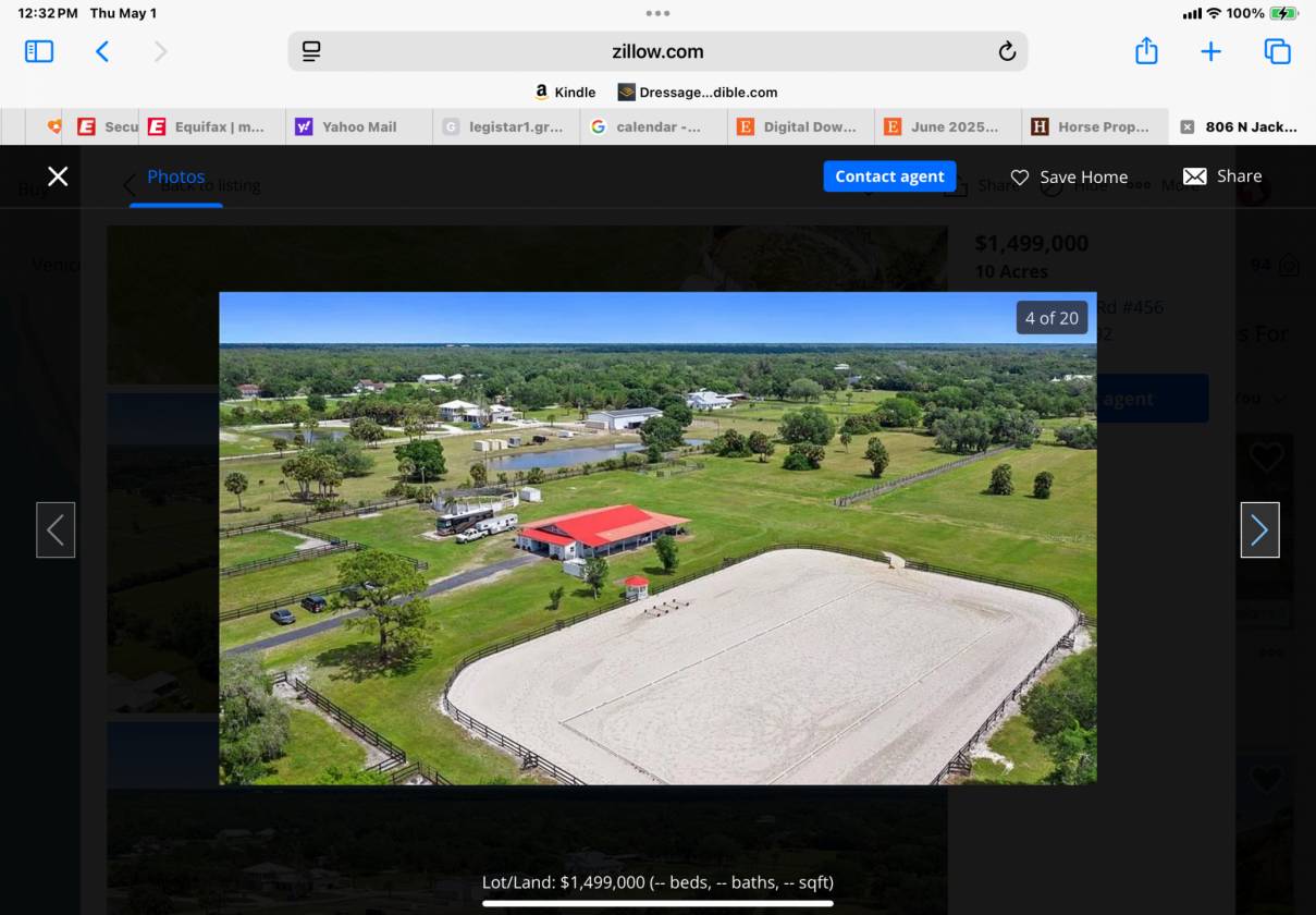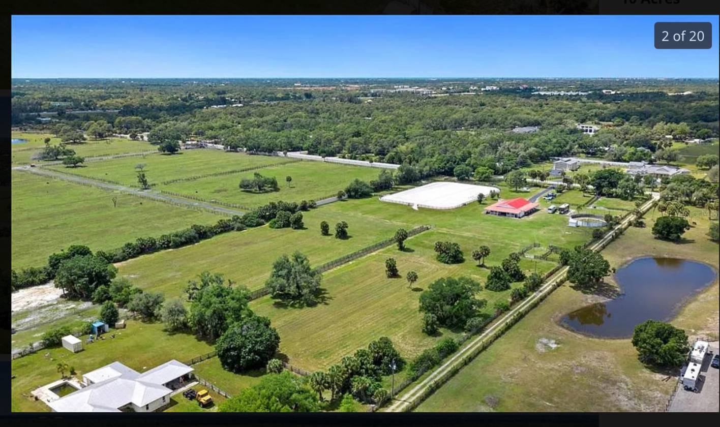 This is a 10 acre parcel zoned OUI. HAS A 10 stall barn with fans and automatic watered. , feed room, tack room Security gate. Fenced with5 smaller paddocks. Back five acres are vacant, great for large turn out area. Large fenced arena with dressage arena inside. Great for hunter jumper Sprinkling system installed 2024. Farm is located approximately two miles from Fox Lea Farms in Venice. World Equestrian Center in Ocala is approximately 3 hour drive.