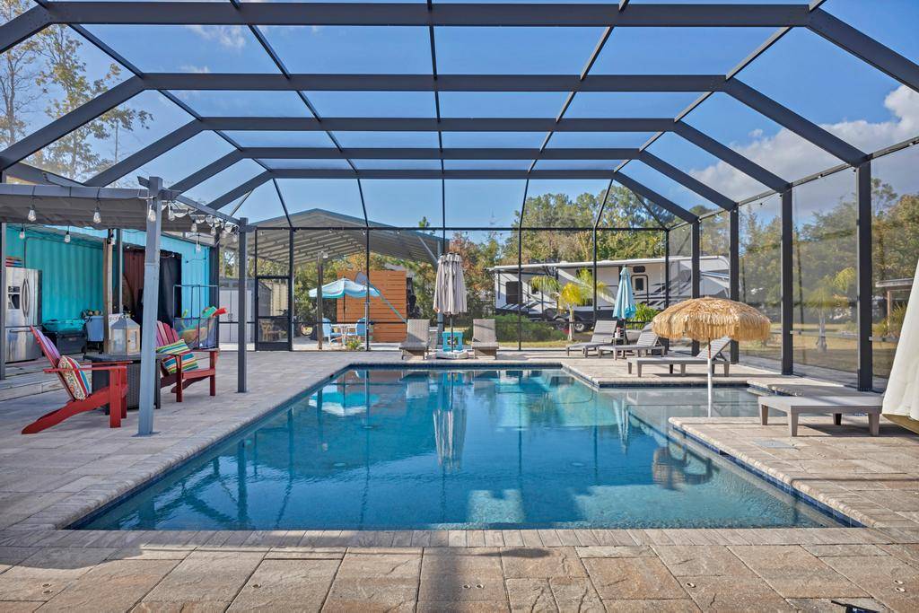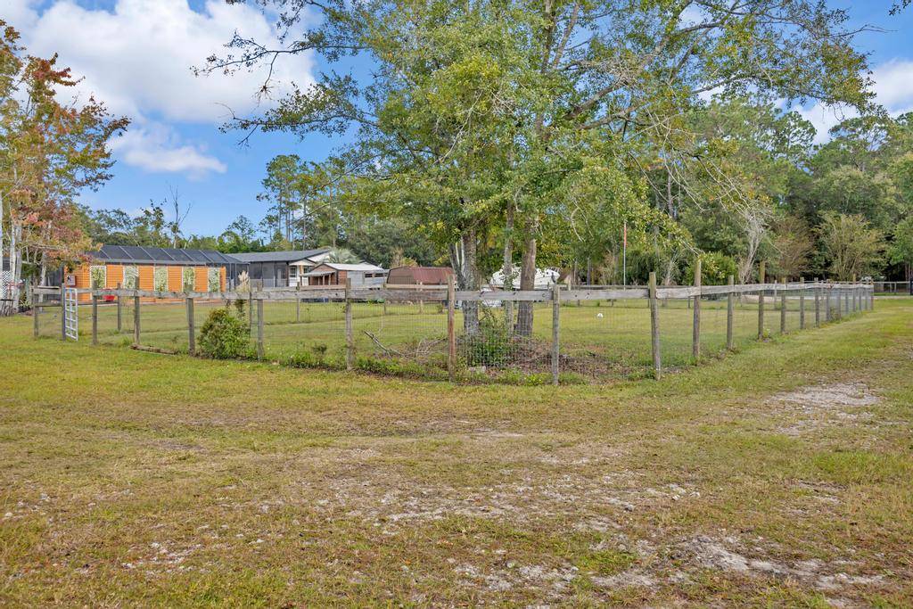 Discover this most unique setting tucked away on a country road in N St Johns County. With a TOTAL of 2.92 ACRES, the property provides for Multi Generational living with 2 PLATTED PARCELS. A custom built 4 bedroom 2 bath home is an open floor plan, well designed for maximum entertainment. Upon entry you are greeted with a spacious dining and living area that flows into a splendid kitchen with a 10' serving island, farm sink ,upgrade stainless appliances and walk-in pantry. A sweet breakfast nook invites the morning sun and looks out over the grounds and back porch. The stone paved fire pit provides evening relaxation for family while the kids enjoy the playground. A huge screen enclosure features a 32x16 deck overlooking the heated salt water pool. For the Equestrian, there is a barn with A/C tack room, 2 stalls leading out to multiple paddocks and pastures. There is a gated main entry and an additional separate entry for moving RV's, boats, Trailers. Bring Horses and 4 wheelers.