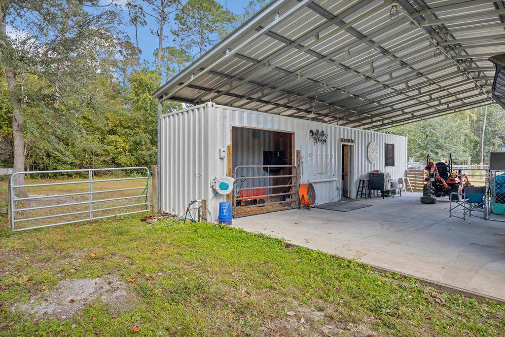 Discover this most unique setting tucked away on a country road in N St Johns County. With a TOTAL of 2.92 ACRES, the property provides for Multi Generational living with 2 PLATTED PARCELS. A custom built 4 bedroom 2 bath home is an open floor plan, well designed for maximum entertainment. Upon entry you are greeted with a spacious dining and living area that flows into a splendid kitchen with a 10' serving island, farm sink ,upgrade stainless appliances and walk-in pantry. A sweet breakfast nook invites the morning sun and looks out over the grounds and back porch. The stone paved fire pit provides evening relaxation for family while the kids enjoy the playground. A huge screen enclosure features a 32x16 deck overlooking the heated salt water pool. For the Equestrian, there is a barn with A/C tack room, 2 stalls leading out to multiple paddocks and pastures. There is a gated main entry and an additional separate entry for moving RV's, boats, Trailers. Bring Horses and 4 wheelers.