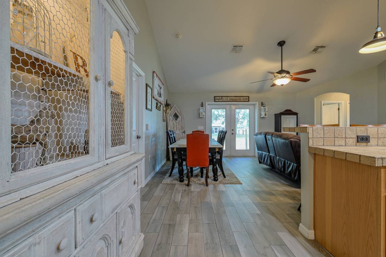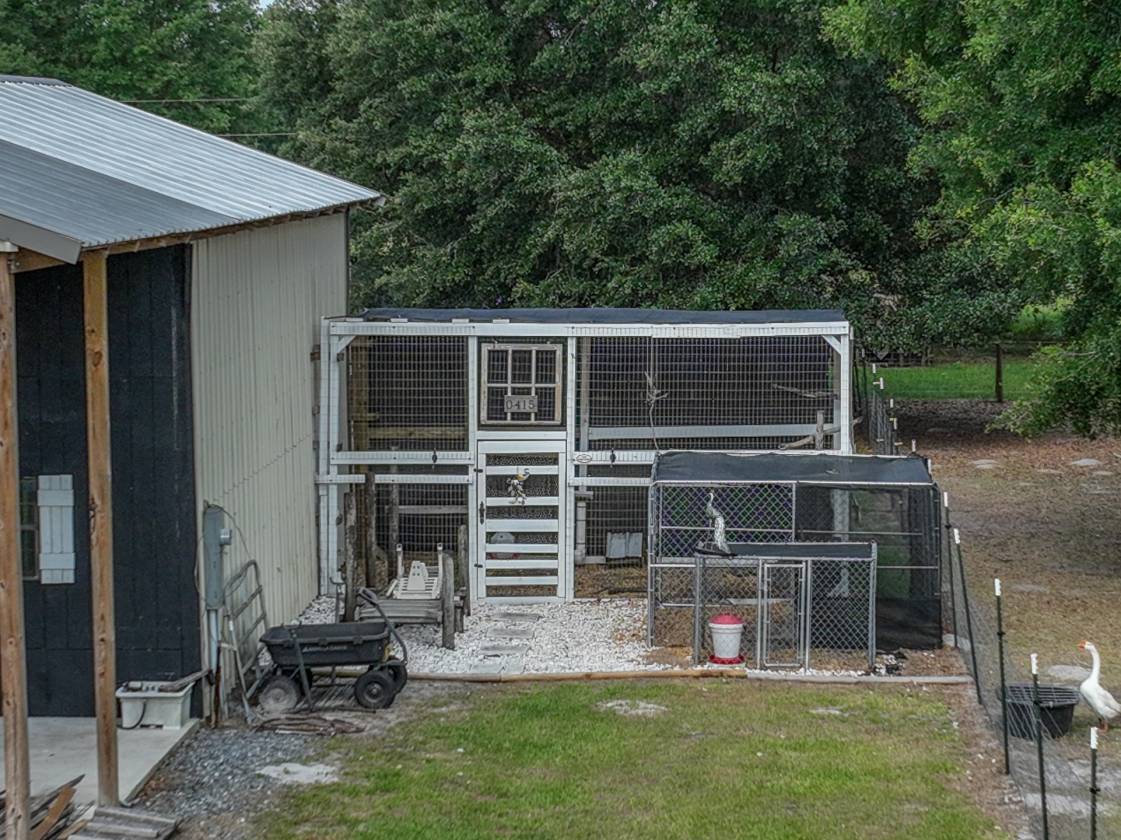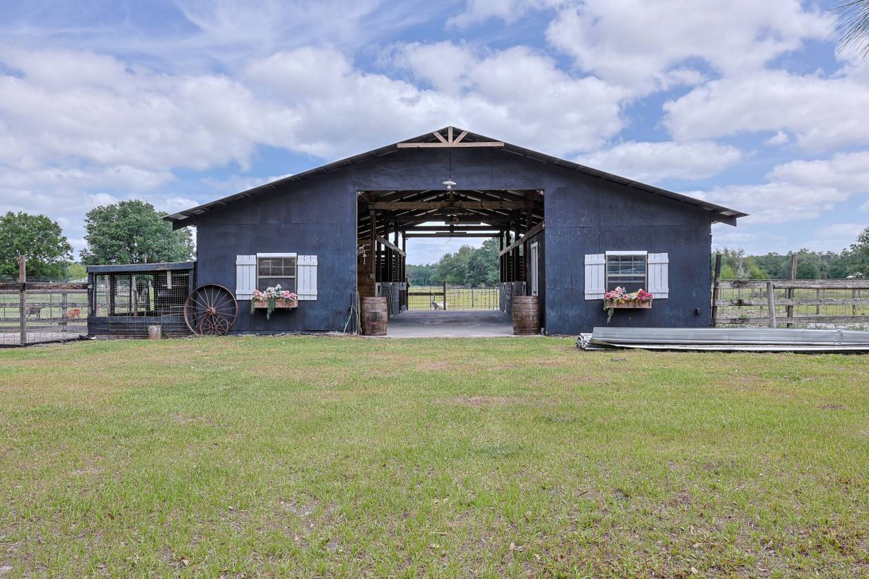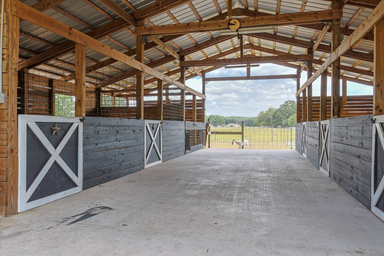 Fully fenced, perimeter hot, 4 pastures, 3 bay garage/shop , chicked coop, bird aviary, dog pens, and 6 stall barn with tack room. All outbuildings have water.