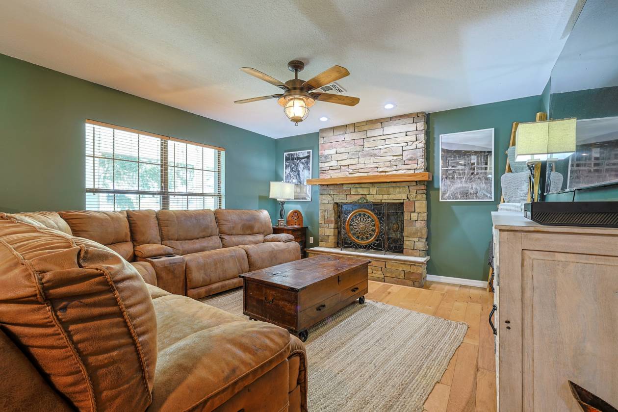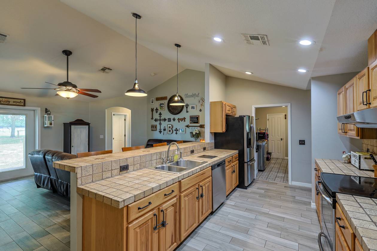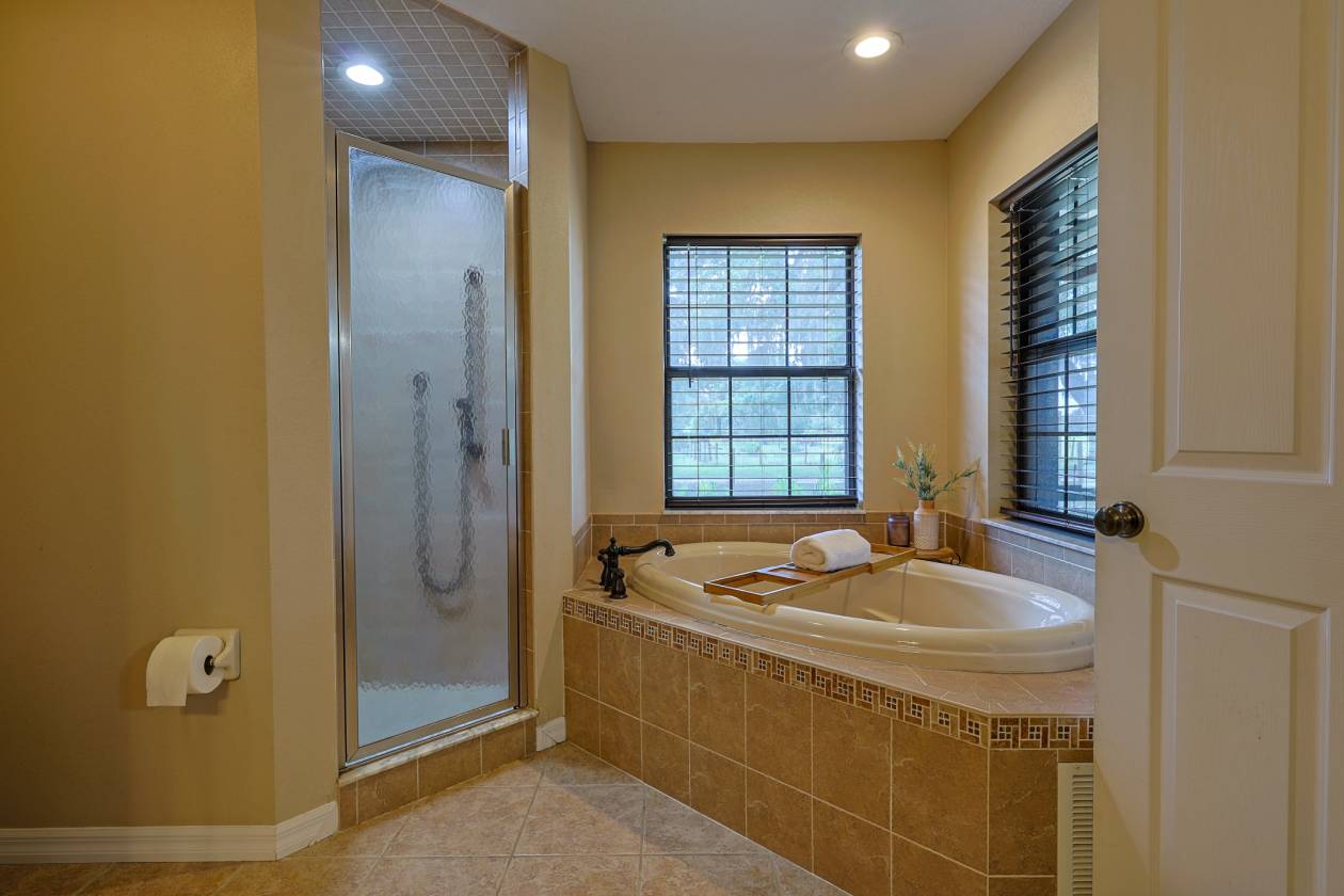 Fully fenced, perimeter hot, 4 pastures, 3 bay garage/shop , chicked coop, bird aviary, dog pens, and 6 stall barn with tack room. All outbuildings have water.