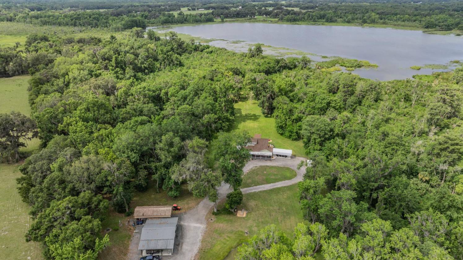 Welcome to your oasis in the country! This 95 acre LAKEFRONT property in Webster is a CERTIFED Wildlife Habitat! 178 species of birds plus fox, rabbits, deer, coyote, and more roam this land making it the most amazing retreat from the hustle and bustle of every day life. Set a half mile off the hard surface road with a private gate and security cameras, this home allows you to enjoy the ultimate peace and quiet so hard to find these days. You won't hear a single siren, car horn, or noisy neighbor. Just the birds calling, owls hooting, and leaves softly crunching under the feet of all the animals who peacefully roam this certified wildlife habitat. The roads have been thoroughly engineered with drainage and irrigation to ensure they remain high and dry. As the private gate opens you will see the 40 x30 ft barn with 6 inches of poured concrete and 2 metal roll up doors, plus a covered RV port with a 50 amp hookup. The home is 3 bedrooms, 2 baths with the primary upstairs with huge windows allowing you to take in the beauty of the property. Porcelain tile throughout, updated bathrooms, tons of storage, a wood burning fireplace, and a wrap around covered and screened in porch. There are miles of ATV and hiking trails on the property, meandering around and about up to the lake and along the creek. There's a concrete bridge over the creek allowing you to access both sides of the creek. The Kubota tractor, A John Deere riding lawn mower, and 2 ATV's that come with the property! For those who might want to bring horses, there's space for a nice sized pasture behind the house, adjacent to the barn, and in the front yard. The trail system is ideal for long, quiet hacks. Or you can use them to create a "track system" which allows your horses to roam the property getting significantly more exercise than in a paddock. The barn has plenty of space to create stalls or use the overhang as a run in. You can create a family compound, a weekend retreat, or since it's commutable to both Tampa or Orlando, live here year round. Come see this amazing home today! AE and X flood zones...NO Flood insurance is required!