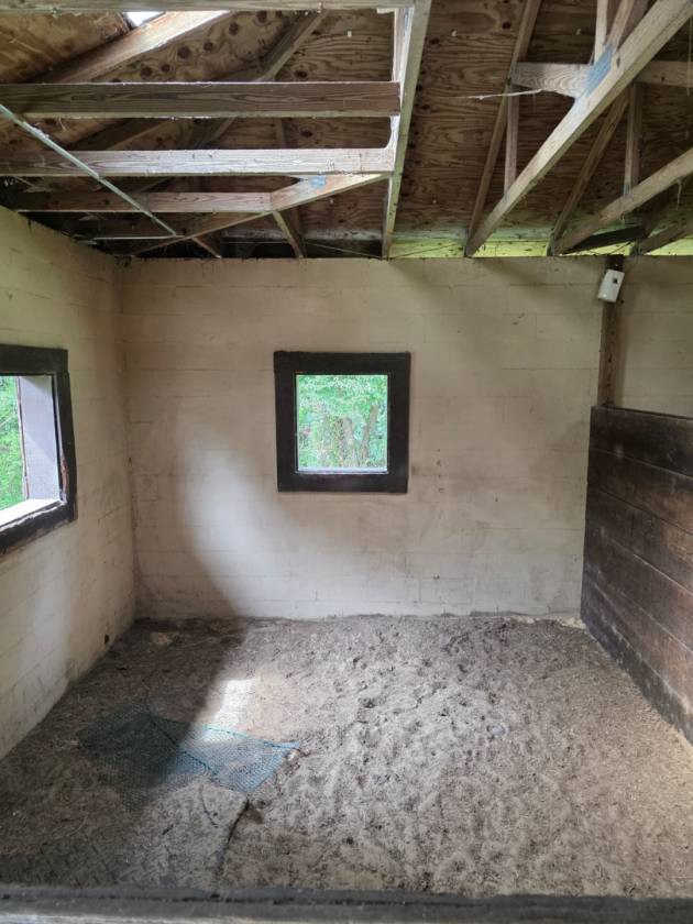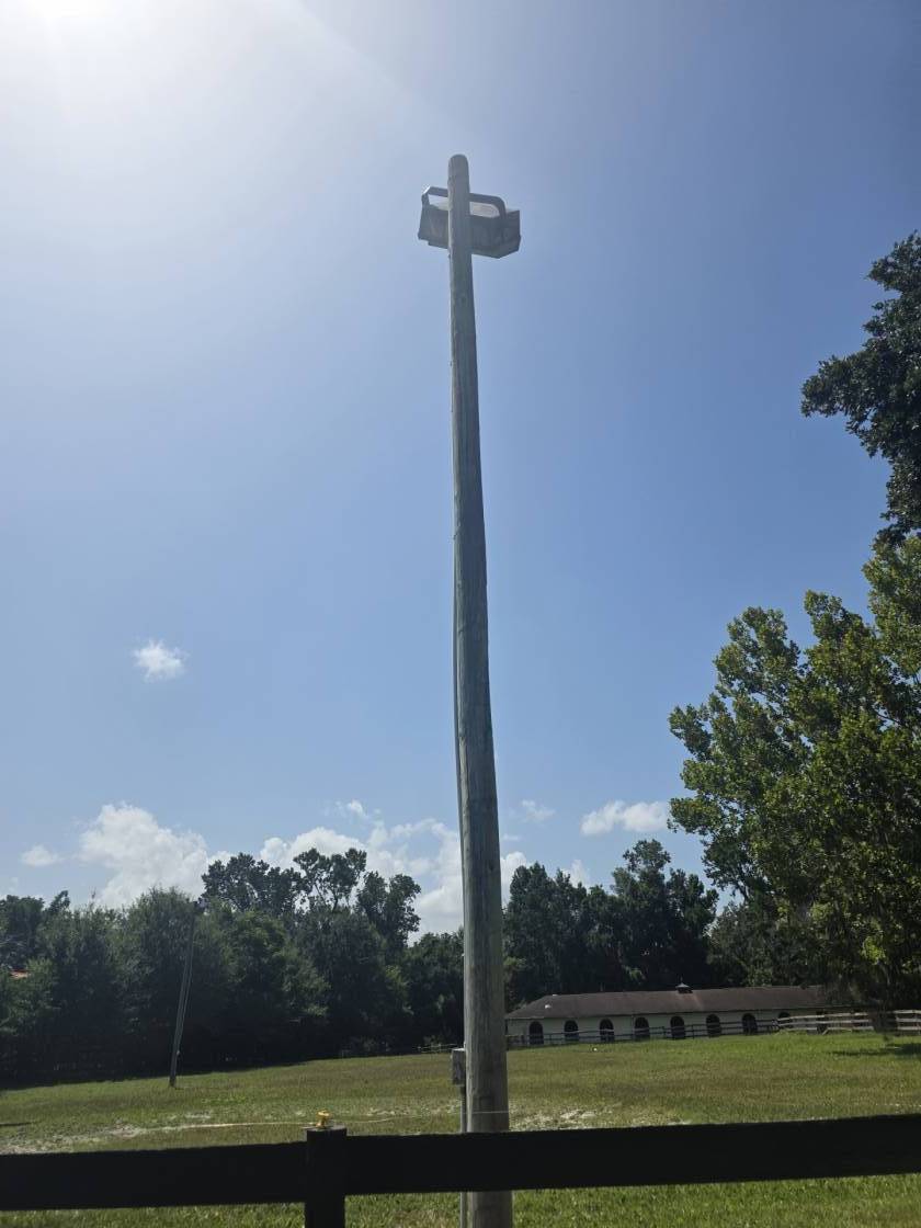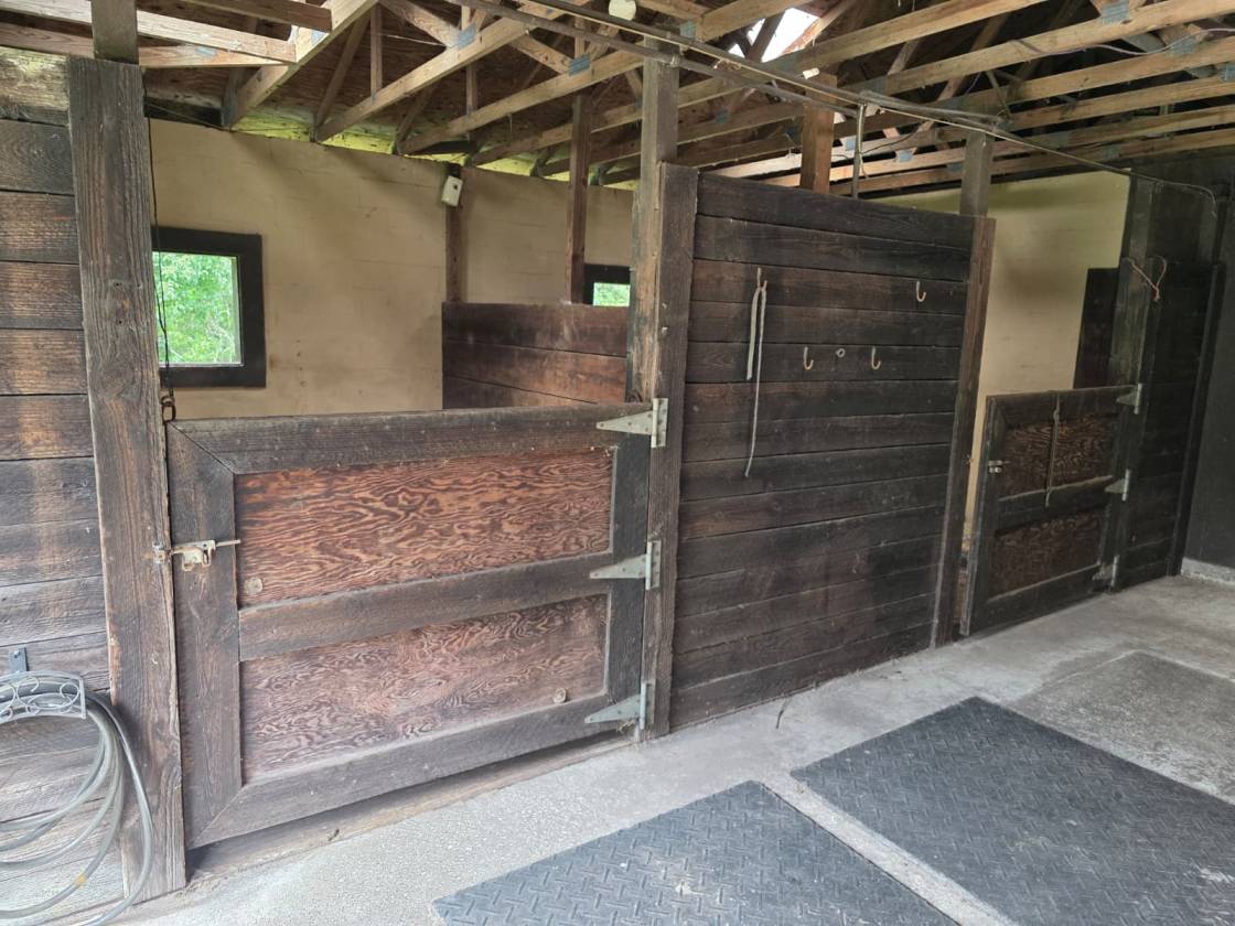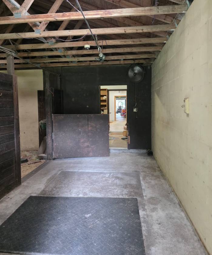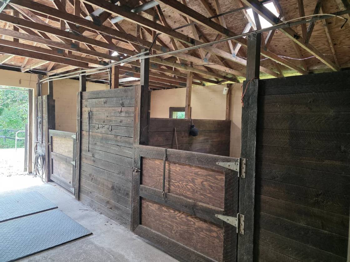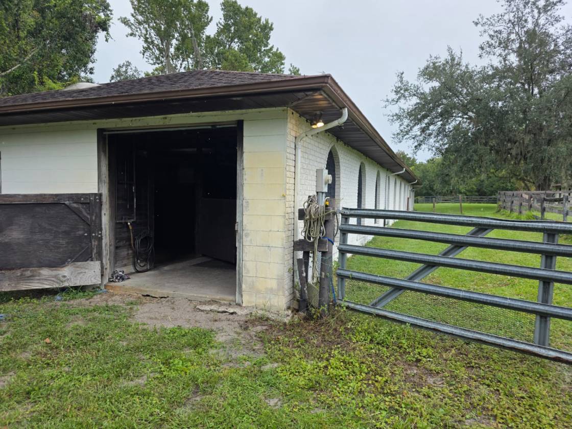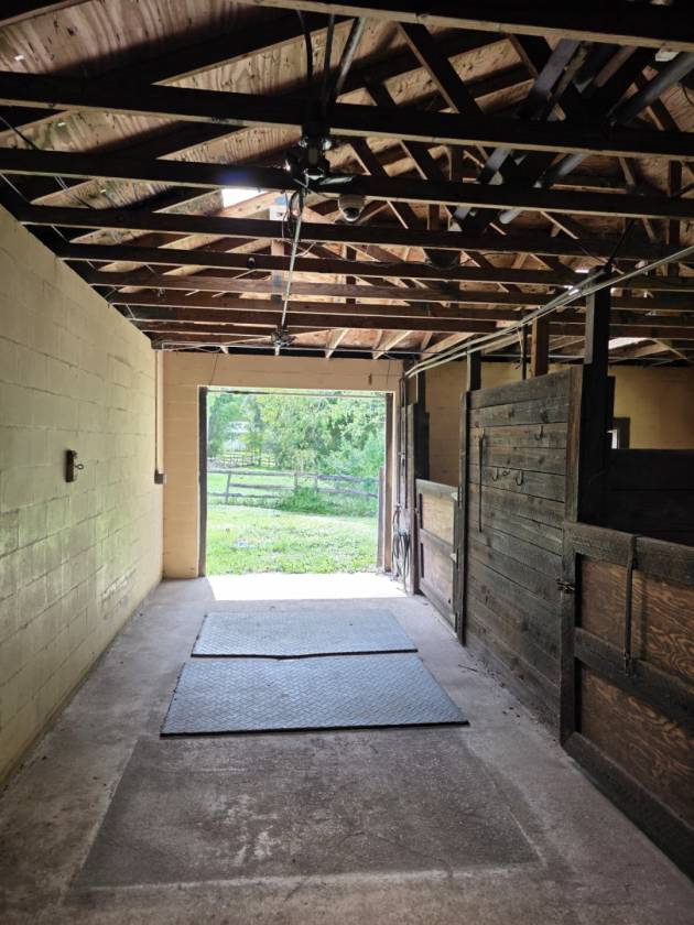 Main arean has 3 light poles perfect for evening riding. The barn has two stalls, is concrete block, has garage space and tool rooms, as well as a tack room right beside the stalls. Property sits high, doesen't hold water. Barn has it's own seperate utility meter, has water. It is also set up for spraying the stalls.