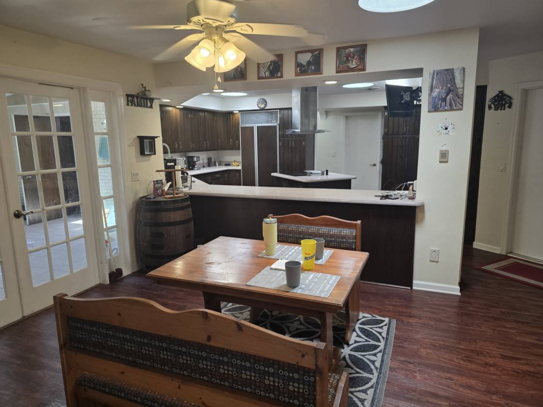 Home is on 6.21 acres. property is completly fenced, with 2 mail pastures one on either side, one smaoller one in the back. Wooded area behind the home and to the east side. Home is nestled in the end of a cul-de-sac with lots of privacy, yet only minutes from shopping, resturants. With a feed store only 1 mile away, and 3 others within 5 miles, Silver Sands Bridal Club is only 2 miles.