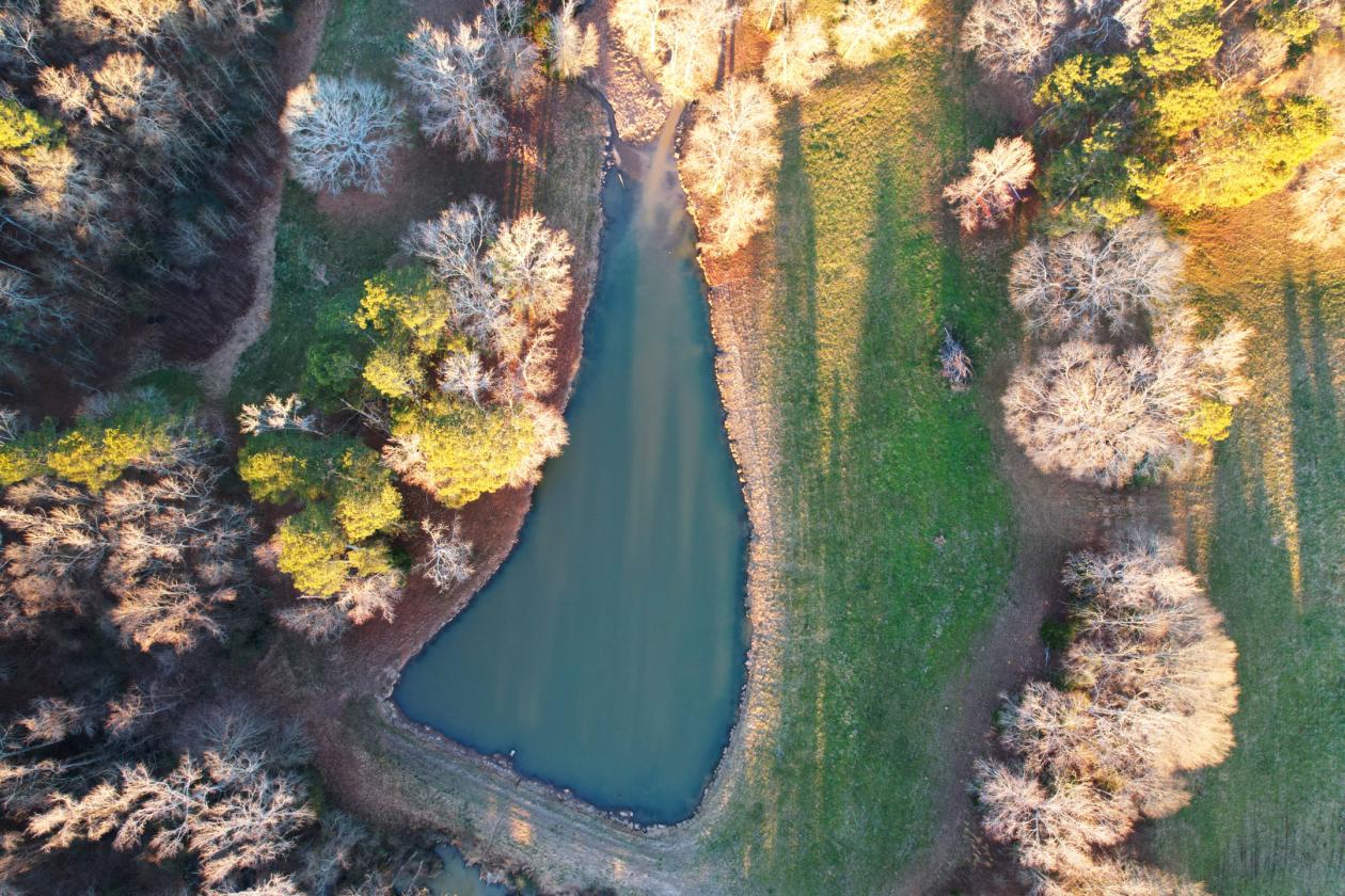 - Small pond, creek, and hardwood draws