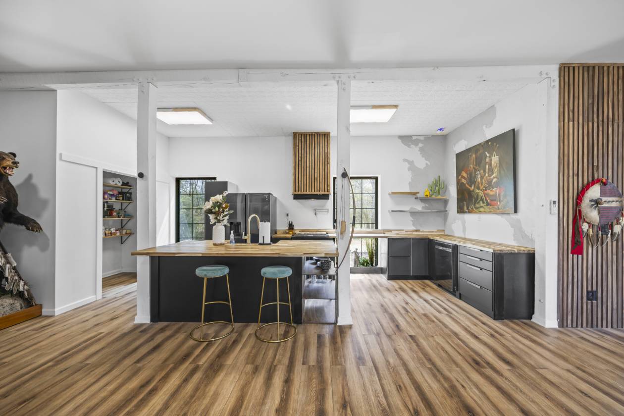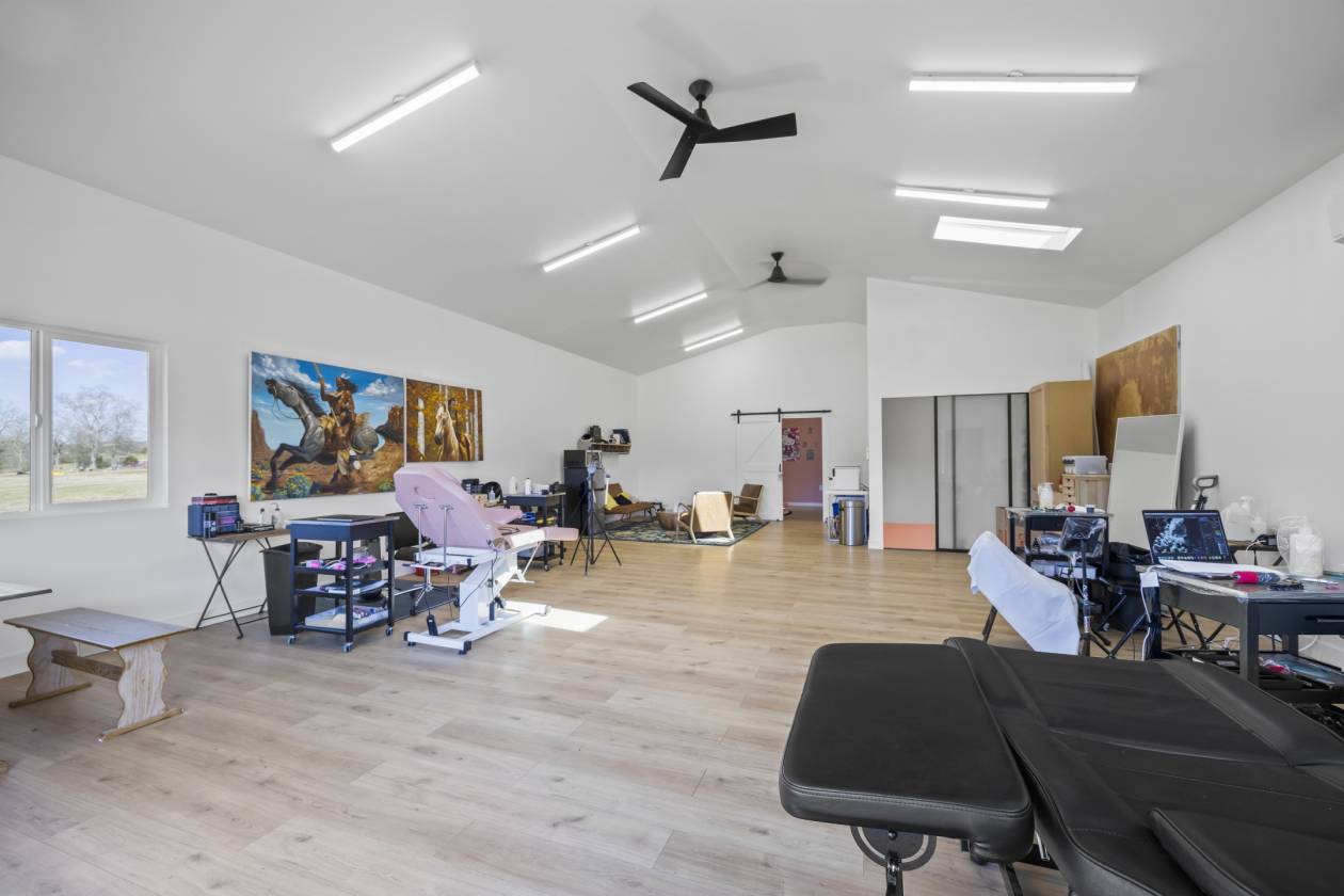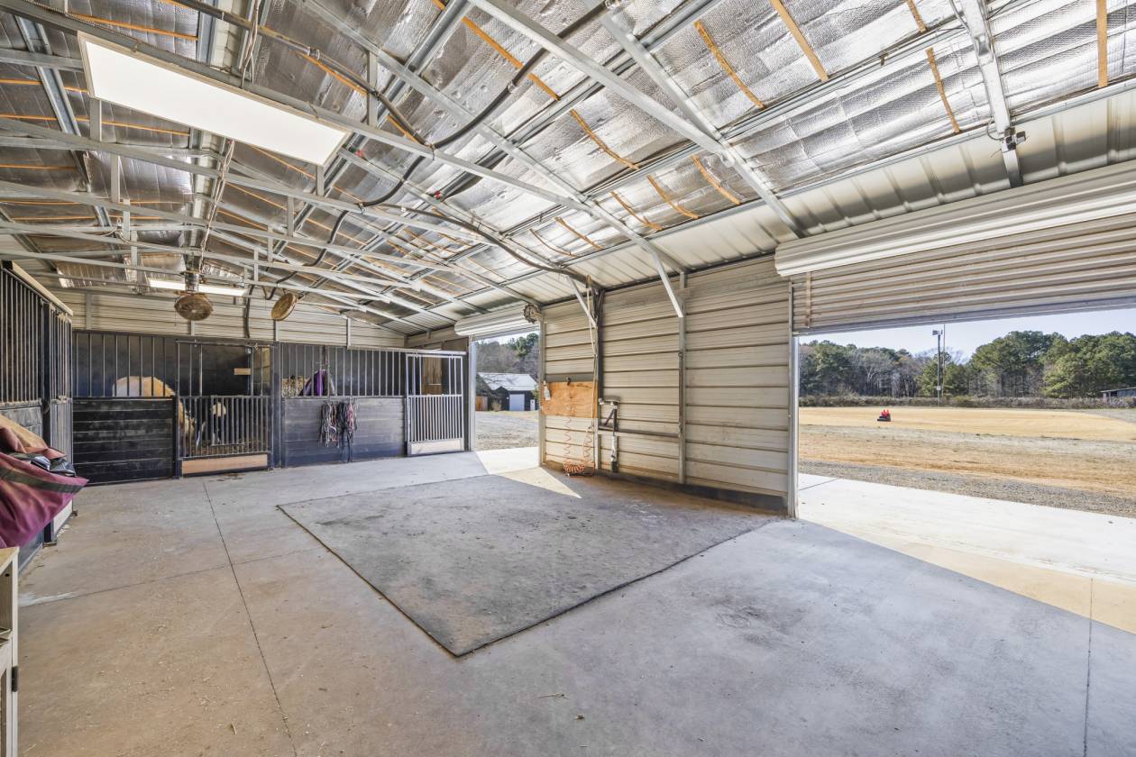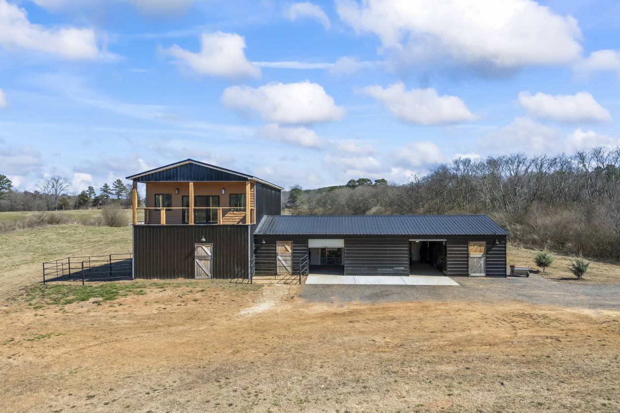 Priced BELOW appraisal!! Walk into instant equity!! Now featuring the main living area, large upscale custom kitchen, and open concept dining room all downstairs. With the addition of a custom vent hood, large island with built in shelves, a huge walk-in pantry and an eat-at bar this kitchen will be an entertainers dream! Upstairs you will find another loft/family room for those cozy nights staying in, the primary owner's suite, as well as an additional room- perfect for a home office or flex room! Set on nearly 13 acres, this turnkey equestrian property is where high-end design meets ultimate functionality. Fully perimeter-fenced, it features four cross-fenced paddocks with brand-new RAM fencing and an additional large pasture with wire fencing-ready for horses, livestock, or your vision. Step through the custom 8'x8' black steel double doors with frosted glass into the barndominium style home. The hand-painted Venetian plaster walls, built-in custom features, and 10-foot ceilings create an airy, sophisticated feel downstairs. Massive 7'x3' picture windows flood the space with natural light, making the main living area pop with the convenience of a half bath right there. At the back, a striking 10'x10' insulated carriage door with stained chevron wood adds a bold, custom touch. Upstairs, soaring 15-foot vaulted ceilings elevate the space. The primary suite is designed for comfort, offering a large walk-in closet, double vanity, and a large walk-in shower all while blending modern and sleek finishes in every corner. Designed for serious equestrians, the barn is fully equipped with six stalls, all featuring auto waterers and RAM stall mattress systems. Each stall has space for a private run out paddock and the barn also includes an indoor wash rack, feed room, and tack room. A separate hay storage area with a garage door makes loading and unloading seamless, while an interior finished section of the barn is complete with a full bathroom. (PLEASE NOTE: Drywall and insulation are now complete in the barn since pictures have been taken). Above the barn, a versatile living space is designed to impress. A large open room with accordion-style glass doors opens the full length of the wall to a viewing deck overlooking the lighted sand arena. Whether you need a home office, art studio, or future living space, this area is ready to be customized. Two additional rooms serve as guest suites or future bedrooms. Additional Features include: Detached two-car garage, storage shed for extra equipment or workspace, lighted sand arena that is perfect for training or evening rides and the added bonus of a round pen with M10 footing. This property is turnkey for equestrians and ideal for those who appreciate high-end finishes, modern design, and flexible living spaces-all in a stunning rural setting.