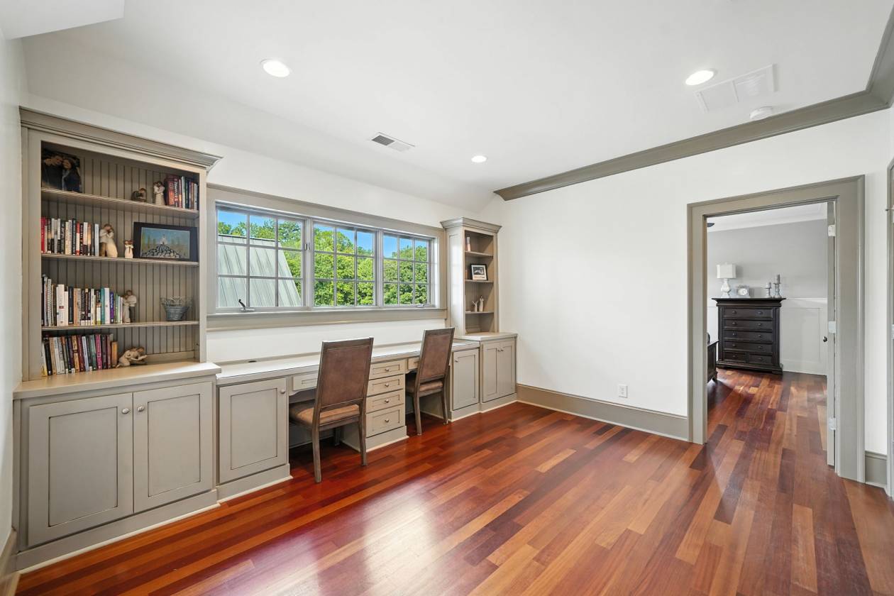 Prepare to be captivated by this extraordinary 18+ acre estate, a timeless Colonial Williamsburg masterpiece in the heart of sought-after Cherokee County. Fully fenced and gated, this property offers endless possibilities as an equestrian haven, private mini farm, or peaceful retreat with panoramic hilltop views. Two barns, subdivided pastures, and a sparkling PebbleTec pool anchor the grounds, framed by rolling hills and a quiet creek-lined rear border. The inviting front cedar porch showcases long-range views, while a detached garage with breezeway and loft offers potential guest or apartment space. A circular drive completes the perfect combination of classic charm and modern function. The elegant 6,500+ square foot main residence blends modern farmhouse design with refined craftsmanship. Freshly painted throughout, it features five bedrooms and five and one half baths. Brazilian cherry floors flow across the main level, where the formal dining room with fireplace, built-ins, and detailed millwork sets a warm and elegant tone. The light-filled gourmet kitchen includes marble countertops, a large island with prep sink, farmhouse sink, custom cabinetry, and a full butler’s pantry. The adjacent dining area opens to a screened porch overlooking the pool and pastures. The main-level family room centers on a fireplace with custom built-ins and beadboard ceiling. The luxurious primary suite features crown molding, a dual-entry custom closet, and a spa-like marble bath with soaking tub, marble shower, and double vanity. The main-level laundry room provides custom cabinetry and a utility sink. Every detail, including Baldwin solid brass hardware, reflects thoughtful design and quality craftsmanship. Upstairs, wide-planked stairs lead to a loft landing with built-ins and a study nook. Three spacious bedrooms each offer private ensuite baths, one with a clawfoot tub, along with a second laundry room. The third floor includes two loft spaces that are ideal for guest rooms, an office, or a play area. The terrace level offers a third fireplace, gym area, fifth bedroom suite, full bath, laundry closet, and abundant storage. Outdoor living shines with a screened porch featuring hardwood floors and a fourth fireplace overlooking the PebbleTec pool with ozone purification, fountain, and waterfall. Lounge and covered patio areas create an entertainer’s dream, while an under-deck system provides year-round outdoor enjoyment. The main barn with loft apartment adds incredible versatility. It includes a bedroom loft, full bath, and kitchenette with separate utilities and Wi-Fi, making it perfect for guests, rental income, or multigenerational living. Below, three oversized garage bays with high ceilings accommodate RVs or large vehicles, with workshop cabinetry and a stove stub for a potential studio or hobby space. A converted fitness area and fenced pastures support goats, chickens, or horses. The upper barn with tack room, currently used for boat storage, was originally designed with five 12x13 stalls and can easily convert back for equestrian use. A large fenced pasture and four-board fencing surround the property, supported by irrigation for lush grounds. A charming air-conditioned playhouse with electricity adds a whimsical touch, ideal for children or as a creative workspace. This rare property combines architectural elegance, modern comfort, and breathtaking land. Whether your dream is equestrian pursuits, multigenerational living, or a private sanctuary minutes from modern conveniences, this estate delivers the perfect balance of beauty, privacy, and possibility.