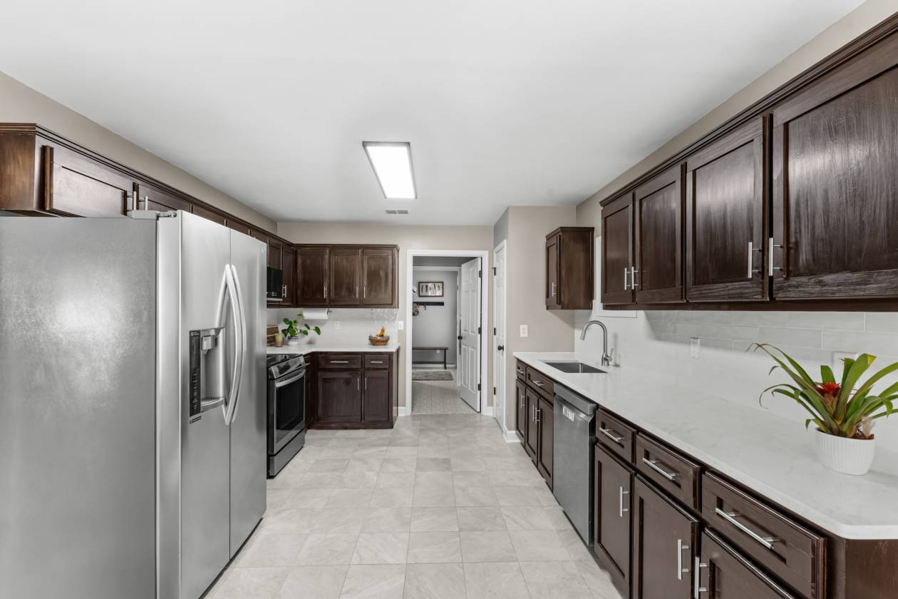 - Quartz countertops and new appliances in kitchen