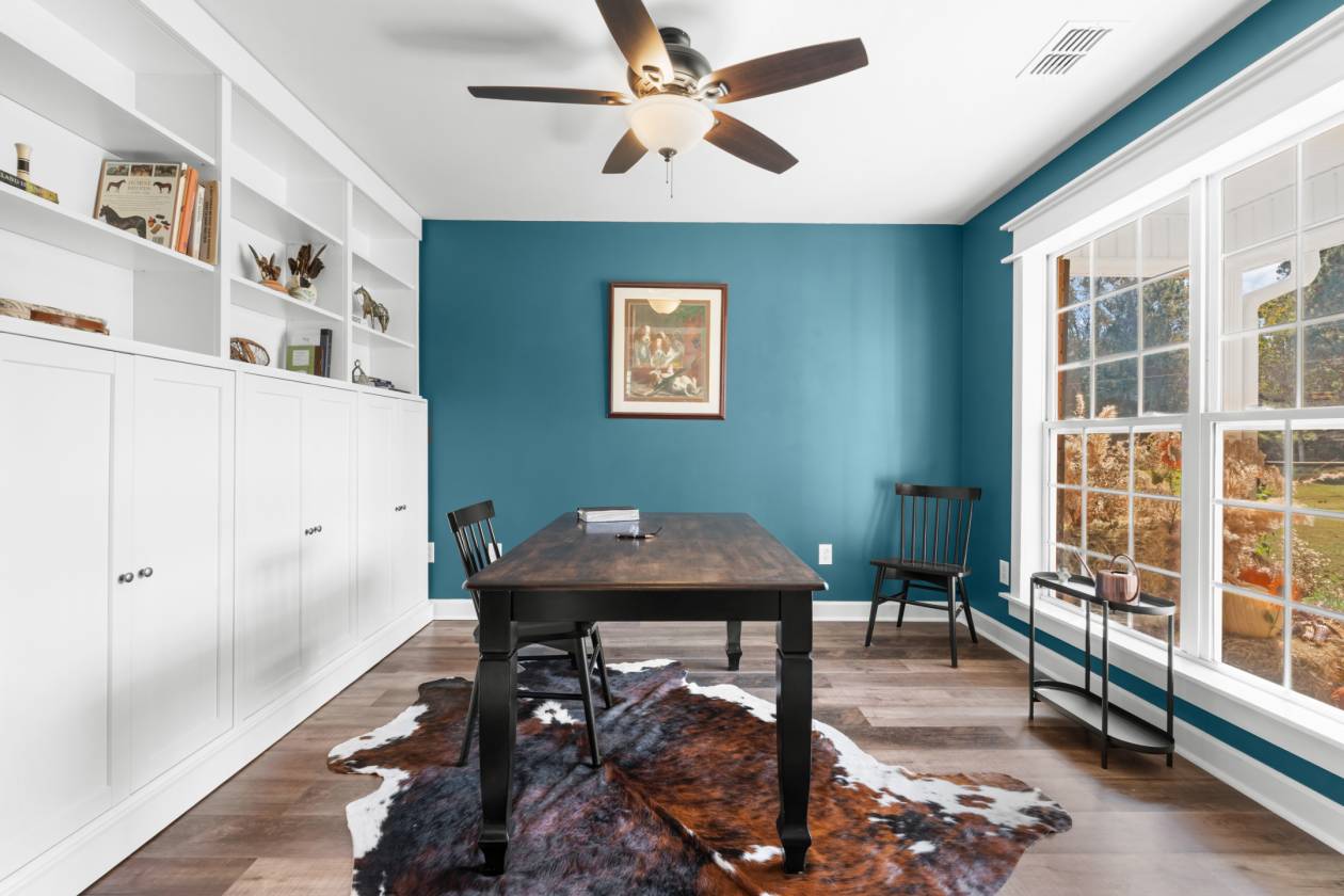 - Flex room can be used as office or dining room has custom wall of storage