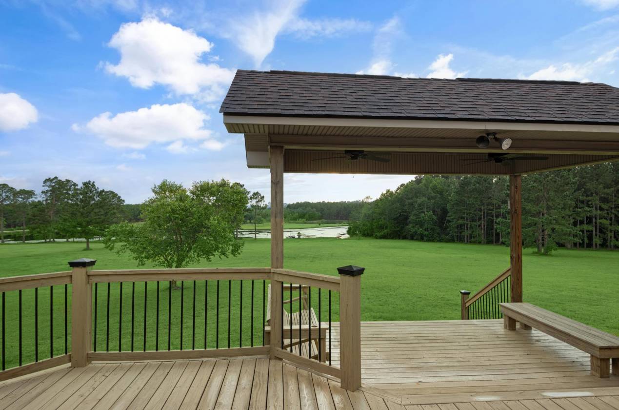 - Large deck on back overlooking pond