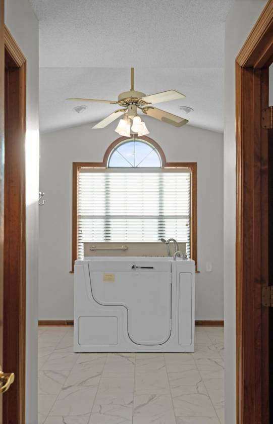 - Primary bedroom has separate his and her closets, tile shower, walk-in whirlpool tub/handicap accessible