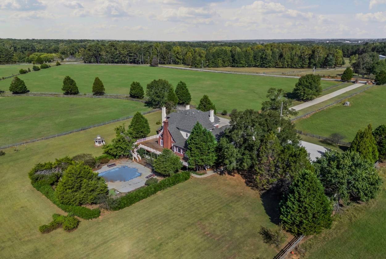Fox Run Farms, Mansfield Ga (45 miles from Athens/UGA), located in a quiet all-farm corridor of upscale farms, family farms and equestrian properties. With an internationally-renowned trainer in the neighborhood, you and your horses can live happily ever after on this fabulous equestrian estate! Entirely fenced and cross-fenced, FENCED road frontage, a 2 acre lake, 14-stall well-constructed barn (runouts and over-sized stalls), separate well for barn, two arenas (uncovered, sanded, lighted), equip storage, shavings shed, parking, separate farm entrance and separate drive corridor to home, numerous flat established pastures (some shaded), hay pastures, woods on property for trails, move-in ready for horses. A NEWLY (2024) CONSTRUCTED immaculate 3 bedroom/2 bath residence on second story of barn, spacious, lovely and never-lived-in with views of pastures and horses. Pastures are established, well-drained and no flood zone. Additional FENCED PASTURE available The drive to the main home, complete with iron gated entrance, along the 550 feet paved tree-lined drive, is picturesque and lovely, with a welcoming fountain enhancing the classic architecture of this brick beauty. Beautifully landscaped, complete with mature hardwoods, there are breath-taking views of all the surrounding pastures and not a sound to be heard! Exhibiting timeless quality, the interior of this custom home is a lovely blend of "classic" ( the gorgeous entry staircase) with 2025 "comfortable" (the open floorplan off the huge kitchen, the stone-stacked hearth in family room, the outdoors-in style featuring a brand new (huge) deck running the entire length of home). Perfect for entertaining and gathering, this open concept fills the home with light and overlooks the beautiful pool and gardens area. Dine al-fresco on the "Southern-living" screened porch off breakfast area, or entertain lavishly on the huge rear deck. The large kitchen features 6-burner gas stove, double ovens, wine fridge, center island, stone countertops and backsplash, beautiful mill-work and breakfast area. The primary suite on main level opens to rear deck, includes fireplace and oversized bath with a custom dress-in cedar closet. Two front-facing rooms ( one a formal dining, the second could make a lovely home office on main) complete the main-floor footprint. The second-level (with rear staircase) features a loft, and 4 additional bedrooms with large closets, two baths. The terrace level (2120 square feet) is partially-finished, stubbed for bath, has a safe room, beaucoup storage space, and opens to outdoor spaces ( shaded patio) then pool. With its own exterior entrances, this space could easily become an in-law suite or apartment for extended family. Mansfield is located 45 miles from Athens, 48 miles from Atlanta, 55 miles from Macon and 125 miles from Aiken. Mansfield has the charm of a small town yet access to all the amenities and conveniences of a larger city; proximity to several parks and forests for trail riding, close to Lake Sinclair and 45 miles to Lake Oconee. It's quick access to I-20 offers the unique blend of peaceful country living, yet with quick access to metro counties, airports, etc. Fox Run farms is move-in ready for you and your horses, trainers, barn help, and extended family. A true gem, this property will capture your heart.