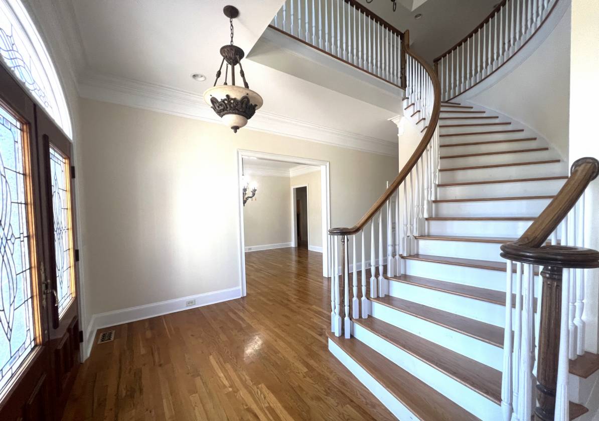 - Dramatic two-story foyer with elegant staircase