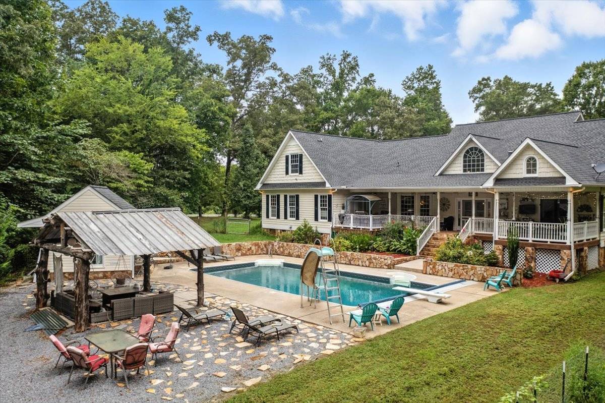 Your dream home is here! This incredible and spacious property has something to offer no matter your passions. Interested in establishing a farm? 10.96 private, level acres with a small barn, pasture and and plenty of room for livestock, horses and crops. The entire property is fenced and includes a security gate. Entertaining more of your thing? How about an inground salt water pool, complete with an electric cover, new pool liner, and pool house with a half bath, plus a festive cedar log cabana? Plenty of room for gatherings on your extensive covered front and back porches with Trex decking. How about an oversized home cinema room for rainy lazy days? Two additional bonus rooms offer versatile space for an office, exercise room, play room, whatever you need! There's a welcoming foyer and separate dining room. The kitchen offers Corian countertops and walk-in pantry and opens to a two story living area with vaulted ceilings and includes a wood burning stove. Huge laundry room and roomy two car garage. Recent upgrades the last couple years include a new roof and gutters with gutter guards. Lovely landscaping! Multiple outbuildings! At just under 4400 square feet, there's plenty of room for everyone! Five bedrooms, four full baths and two half baths! The master bedroom area offers a jetted tub, double vanity, huge walk-in closet, hidden safe room and French doors that open onto the covered back porch. A second bedroom also opens up onto the covered back porch. But wait! There's more! Low maintenance vinyl siding with shaker shingles! Tray ceilings in downstairs bedrooms! Gleaming hardwood floors! This dream property is priced well below a recent appraisal! Make your appointment to see this beauty today before it's gone!