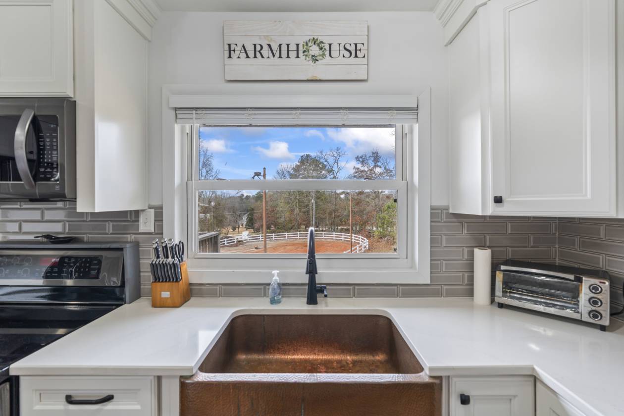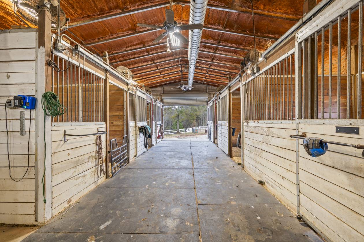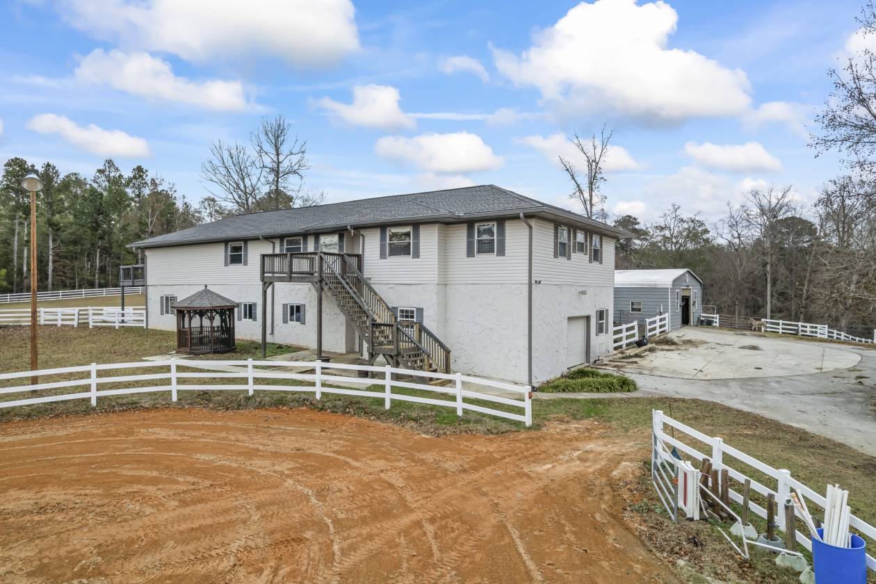 Welcome to this exceptional 11.25-acre equestrian estate in Conyers, GA—beautifully designed for both serious horse enthusiasts and those seeking a peaceful, private retreat. The property features five well-planned pastures, 10 stalls, and two arenas, including one lighted arena for evening training. A viewing stand, individual tack lockers in the main barn, and a beautifully renovated tack room in the secondary barn add convenience and comfort for riders. The main home offers generous living space with a large finished basement, complete with its own living area, bedroom/bonus room, and full bathroom—ideal for guests, multi-generational living, or a private office. Inside, the home showcases renovated bathrooms throughout. The updated kitchen is complete with custom cabinetry throughout, featuring pull-out drawers, and lazy susans for effortless organization. The large kitchen is highlighted by a hammered copper farm sink, tile backsplash, and black stainless appliances. The primary suite features a private deck overlooking a pasture (picture your horses grazing while you enjoy your morning coffee) and a master bathroom with a lovely glass shower and double vanity. Everything in the home is has been replaced or updated within the last couple of years, including the septic system, well pump, roof, and HVAC. Outside, you’ll find a screened gazebo, a garden, ample trailer parking, and a storage barn for equipment and hay. The extra-large garage offers abundant workshop and storage space, with a climate-controlled center section for year-round functionality. The main barn includes a hot/cold indoor washrack, making grooming and care simple in all seasons. Whether you are looking for a training, boarding, or personal farm for enjoyment, this is a rare opportunity to own a turnkey equestrian estate with every amenity already in place close to shopping and restaurants and within 30 minutes of the Atlanta Airport.