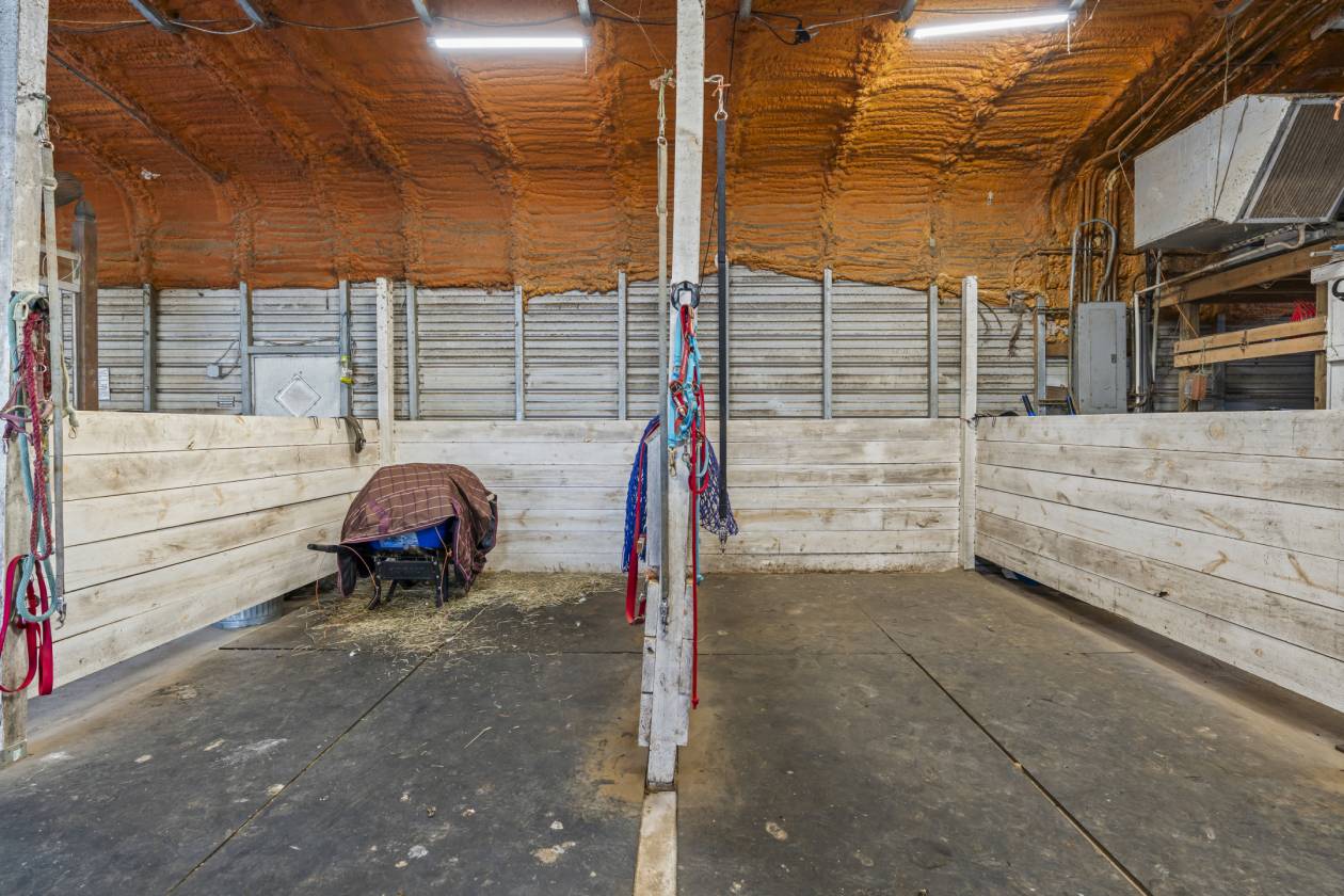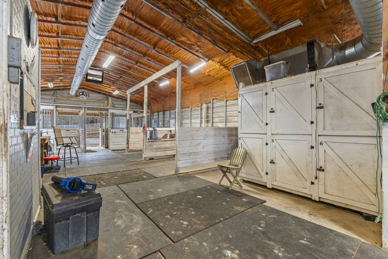 - one barn has 8 stalls, currently one of those is converted to two mini stalls
