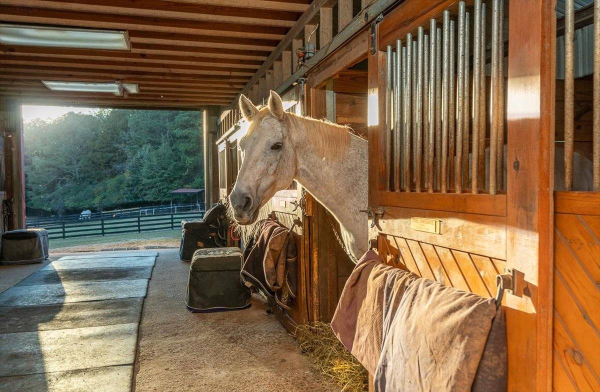 Premier 30-acre commercial training and boarding facility designed for serious equestrians, competitive riders, and professional trainers. Purpose-built with top-tier amenities and an exceptional layout, this operational horse farm offers the ideal combination of function, comfort, and world-class infrastructure. At the heart of the property are three meticulously maintained barns featuring 29 matted stalls, automatic waterers, hot and cold wash racks, dedicated tack, feed, and laundry rooms, and a 750-bale hayloft with additional flat storage for equipment and supply management. The barns are supported by a professional fly spray system, a welcoming lounge with TV, and a convenient on-site restroom, ensuring comfort for clients, riders, and staff. Training facilities are truly exceptional. The 180' x 70' lighted indoor arena is equipped with timed sprinklers and potential geothermal HVAC, ensuring year-round rideability and an ideal training environment. The expansive 200' x 300' outdoor arena features premium M-10 footing lighting, perimeter and center sprinkler systems, integrated shade trees, a sound system, and a viewing deck perfect for lessons, clinics, or shows. Additional training amenities include an 80-foot round pen, a derby hill with three permanent jumps, and bridle paths that wind throughout the property. For housing or staffing needs, the property includes a renovated two-bedroom cottage, well suited for trainers, grooms, or working students. Property also features a custom-built, 5,200 sq-ft farmhouse-style estate overlooking the serene 4-acre, fully stocked "Black Lake," and surrounded by breathtaking seasonal foliage. Home & horse farm can be purchased separately or together. Call for more details.