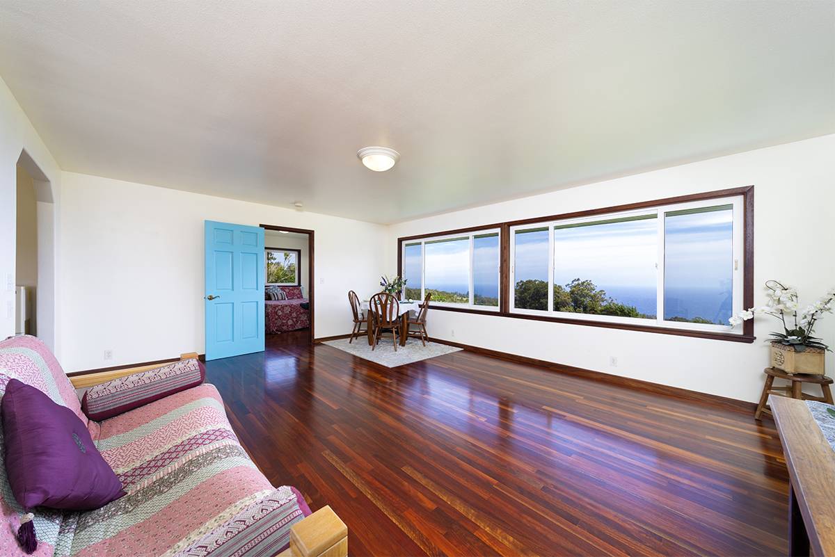 Welcome to your immaculately cared for off-grid equestrian estate, ranch or farmstead featuring 17 lush, ocean-view acres on the spectacular Hamakua Coast of the Big Island of Hawaii. Designed for sustainability, beauty, and income potential, this rare offering includes a spacious 2,200 sq ft, two-level home with 4 bedrooms and 3 bathrooms, one with kitchenette, a fully permitted 1-bedroom/1-bathroom guest house, 2 huge greenhouses, all necessary farm equipment, mature fruit trees, vegetable and flower gardens, crowned by stunning Pacific Ocean views!