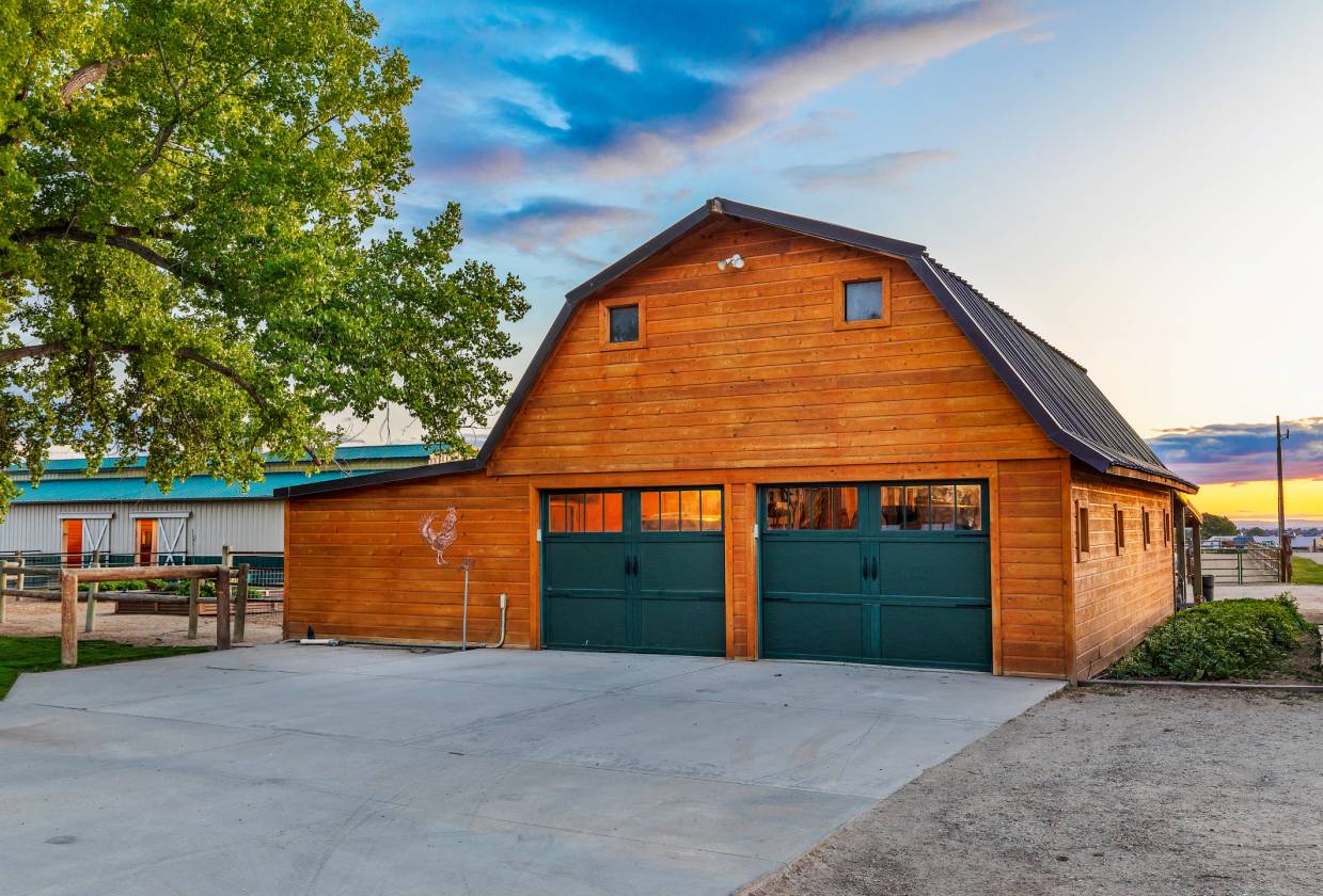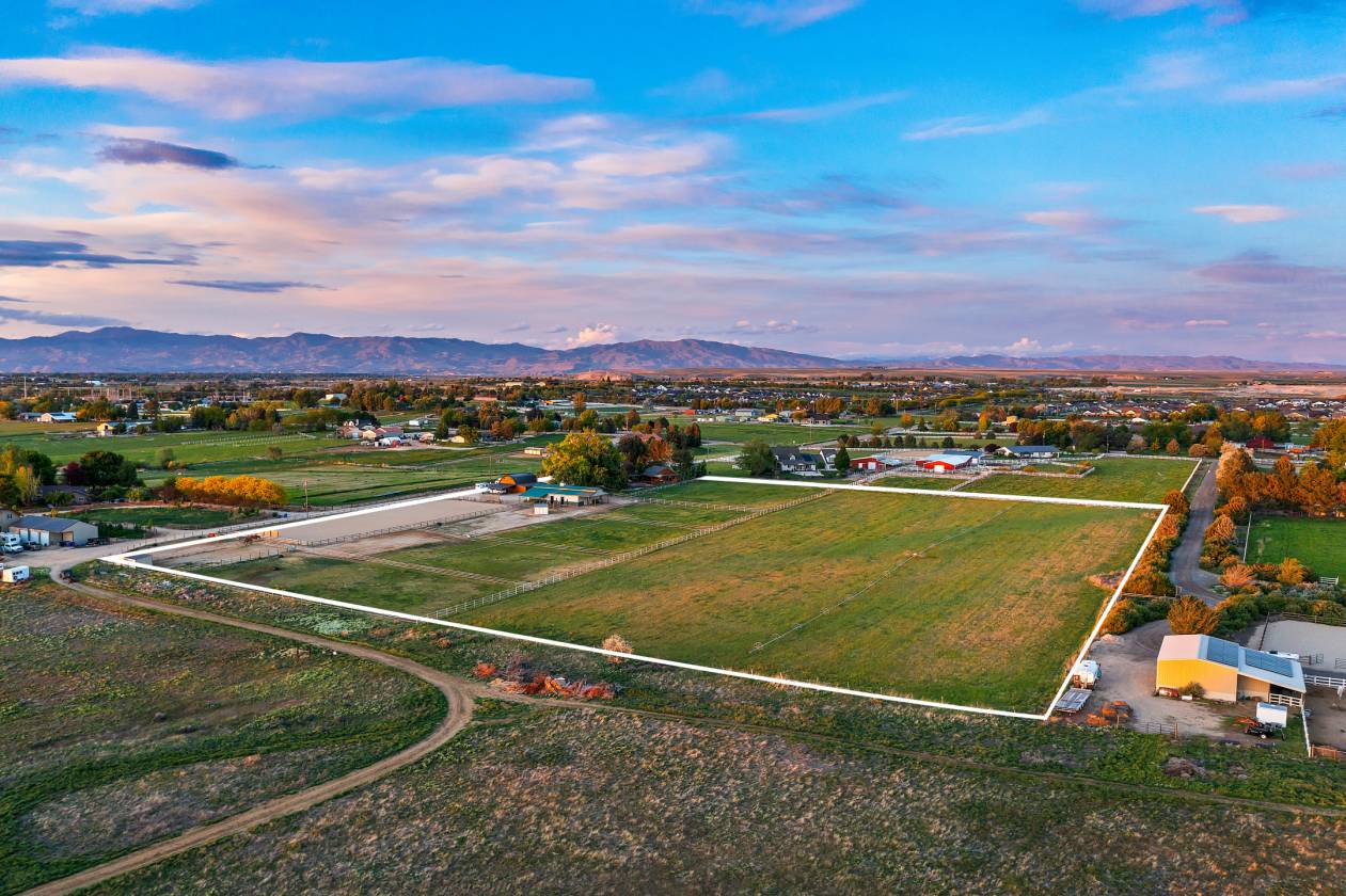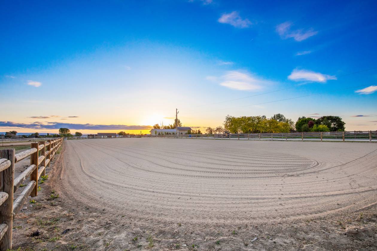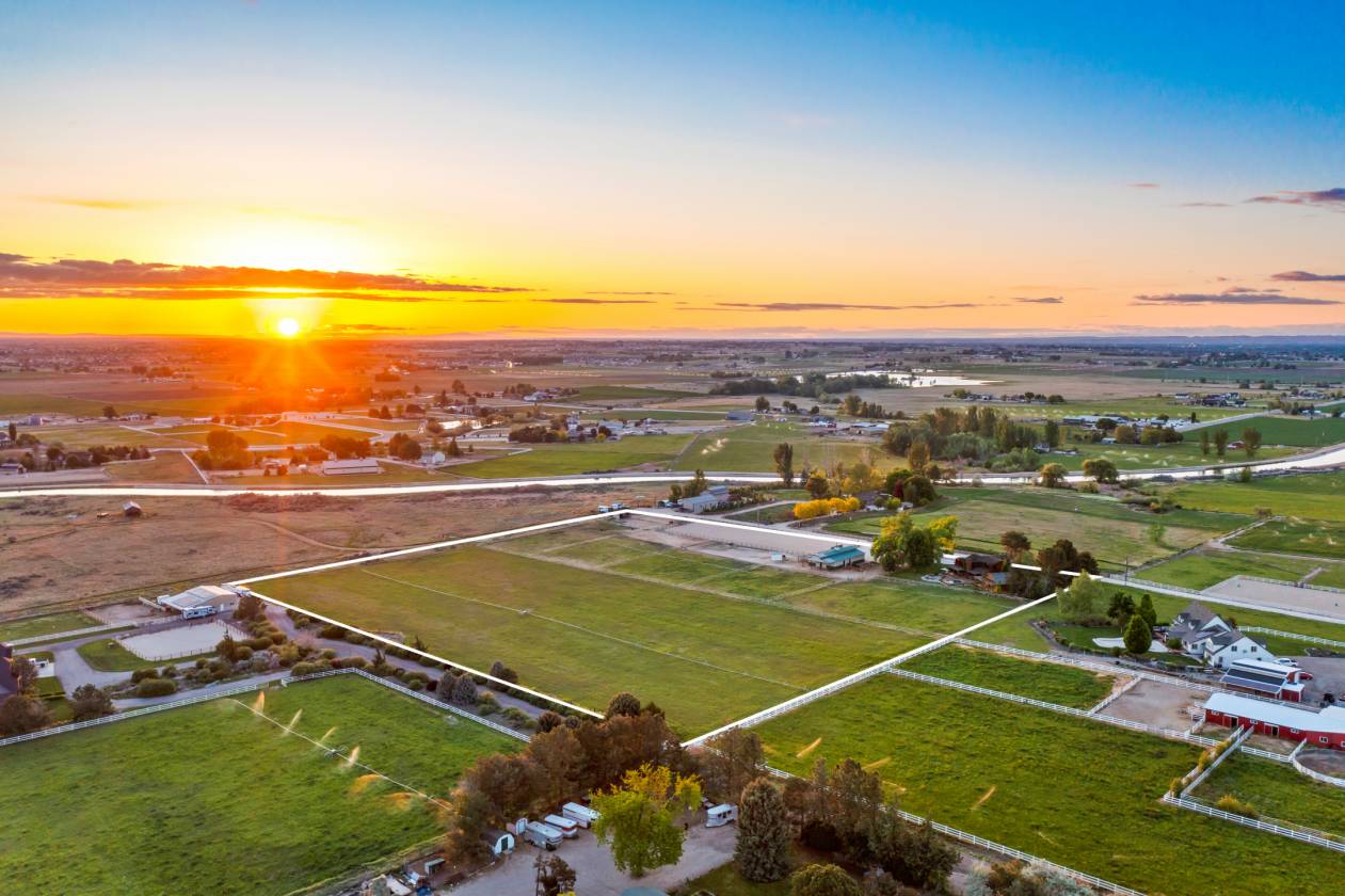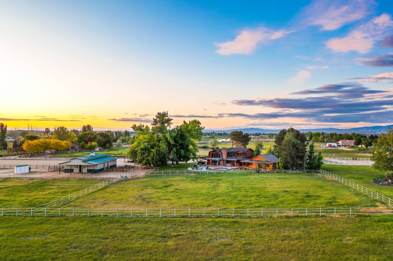 Sprawling farmland, open skies, and a sense of peace define this extraordinary property. Nestled south of Boise city limits on a private lane near Falcon Crest Golf Course, this custom all-wood estate offers a rare blend of privacy, functionality, & beauty. The setting features a stunning main residence, charming guest quarters, a 4-stall horse barn, lush irrigated pastures, a large, sprinkled riding arena, & 10+ acres where you can live the dream of owning your own land. The property offers views of the Boise Front & Owyhee Mountains and rare privacy without being surrounded by a sprawl of subdivisions. The main home features tongue-and-groove walls, vaulted ceilings, rough-sawn wood floors, and a great room with a soaring wall of windows. A detached bunkhouse offers 2 beds, 1 bath, and a shared living/kitchen area. Enjoy wrap-around porches, a pool & hot tub, and an expansive deck. The horse barn includes a heated tack room, wash stall, & hay storage. Peaceful, private, & purpose-built; this is true Idaho living.