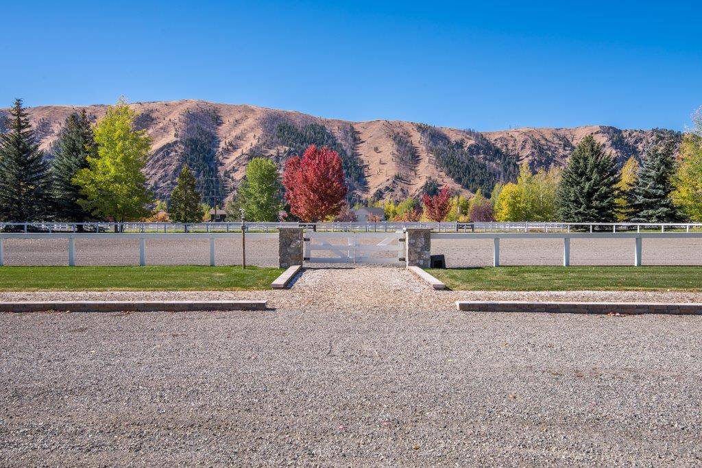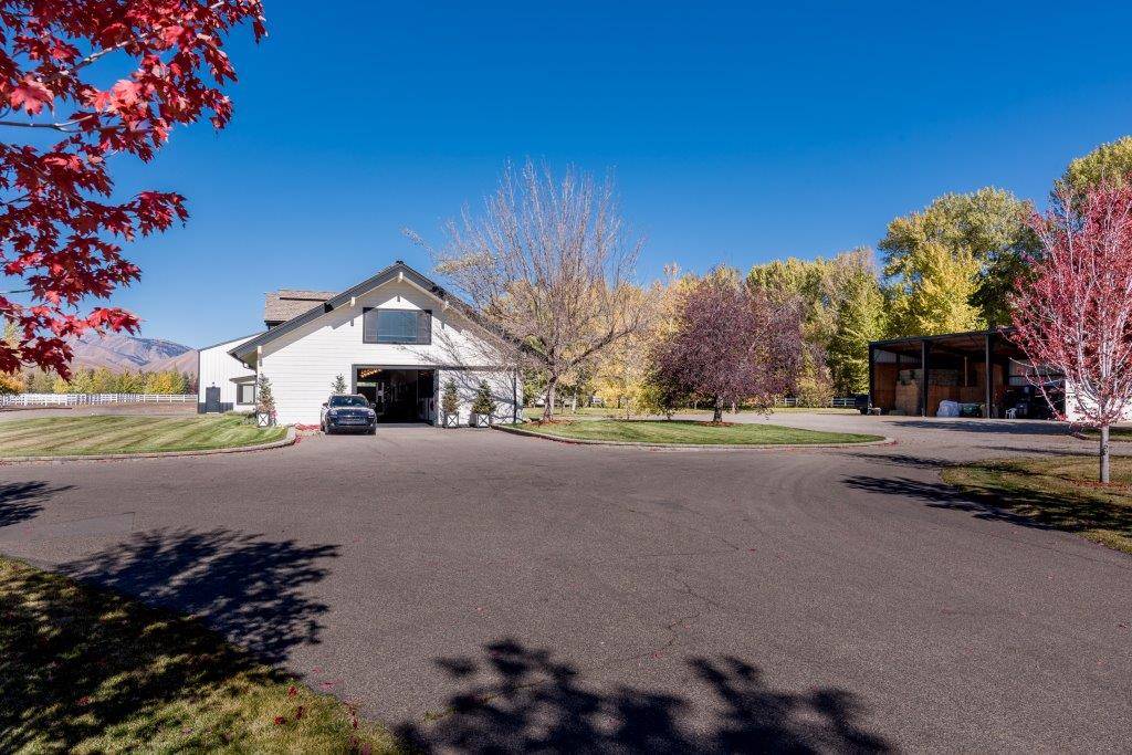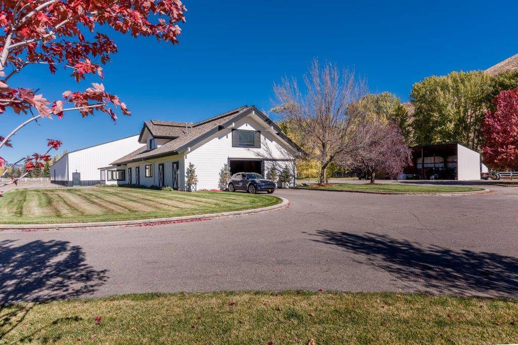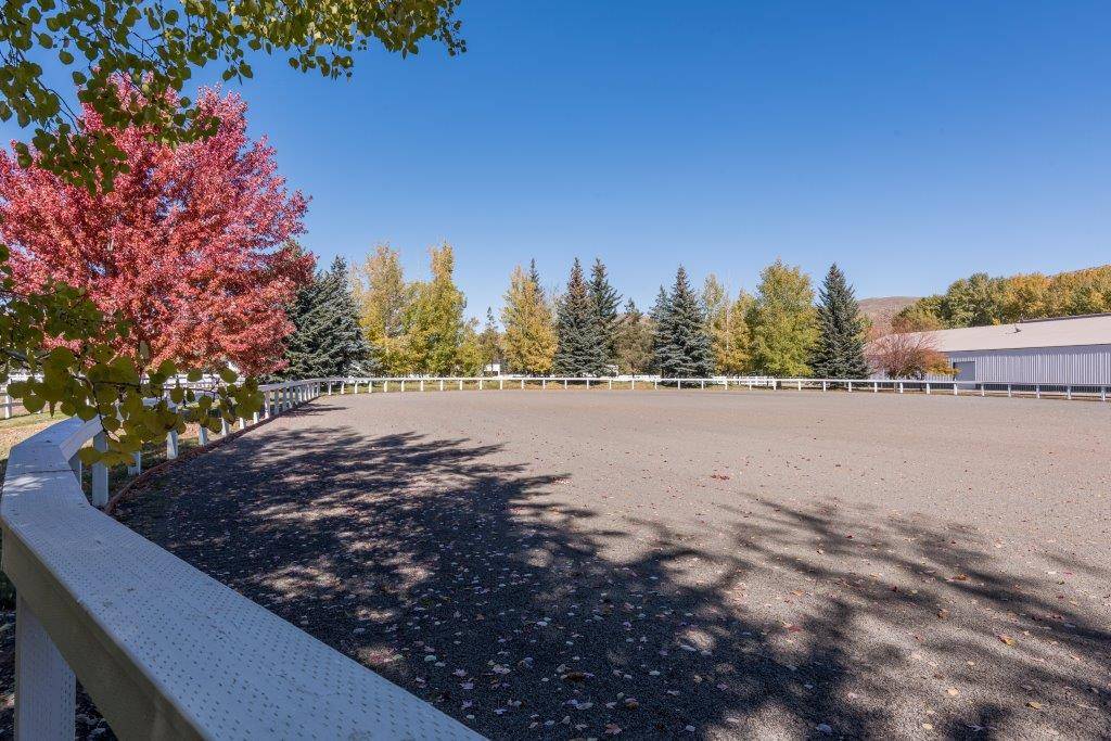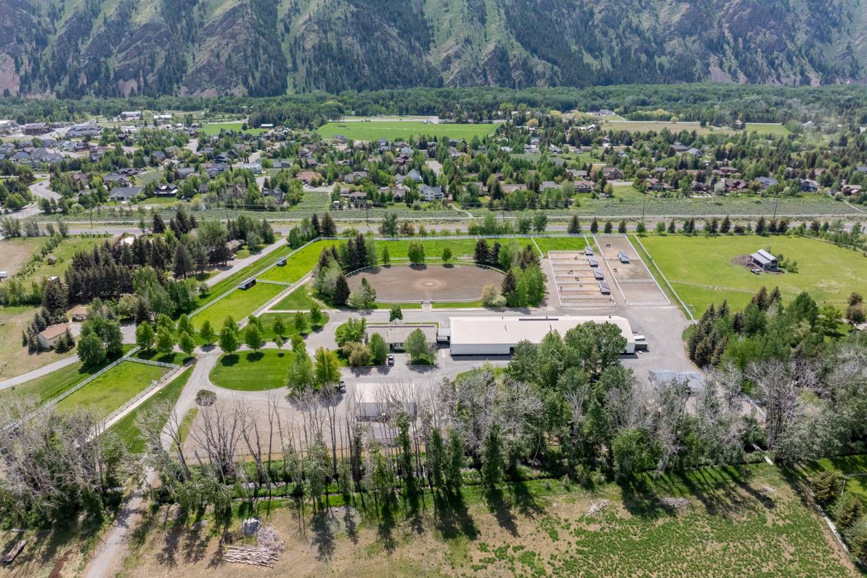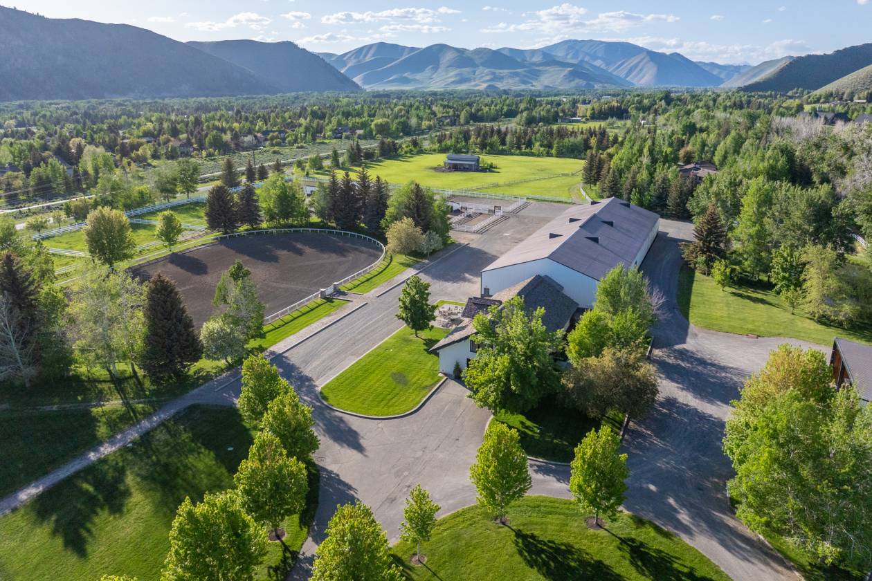 Incredibly well located and finished to the highest standards, this equestrian property has a beautifully outfitted main barn (with 6 indoor stalls, a kitchenette, gathering room, laundry room, bathroom and tack room), a 15,650 SF indoor riding arena with a viewing room and equipment storage area, an additional 6-stall barn, hay shed, 7 smaller barns and a large pond. Includes 14 acres water rights. The developed section of the property has 14 acres fully fenced and irrigated. On the backside of the property is 8 flat acres of undeveloped land that adjoins BLM land (perfect for an estate home & guest house).