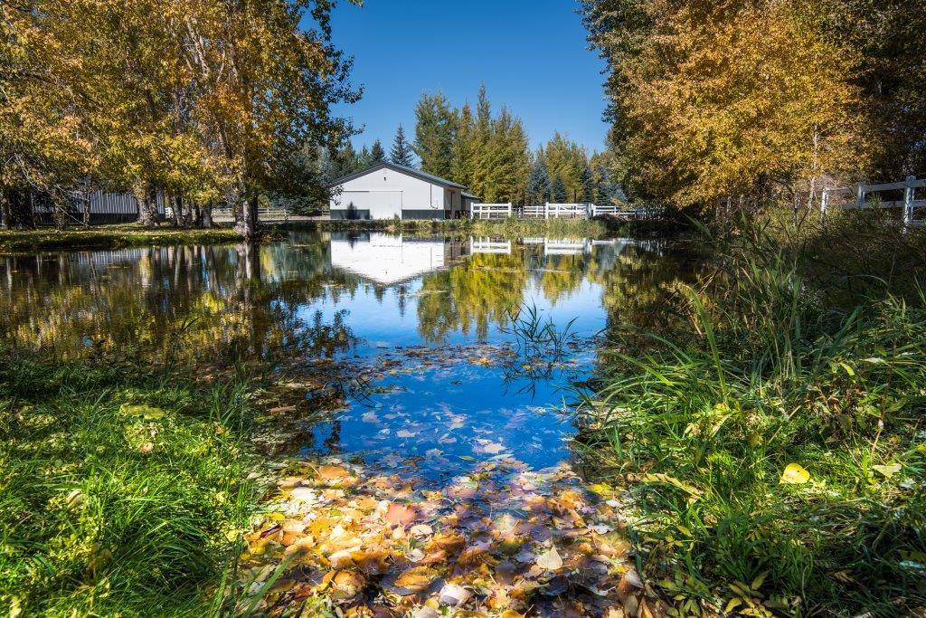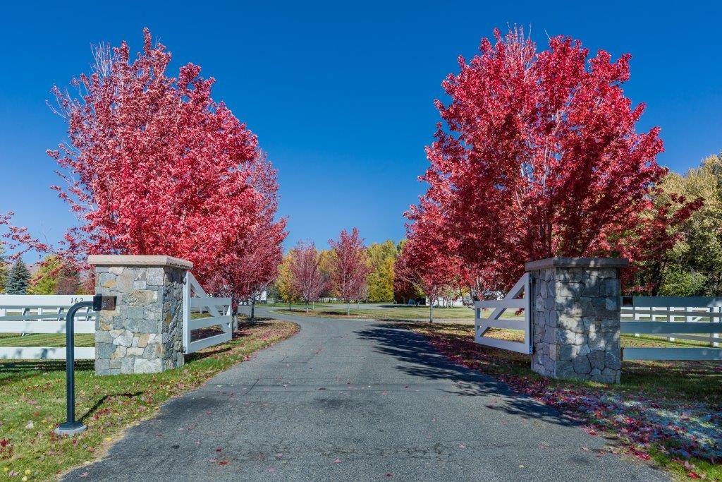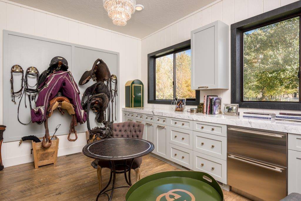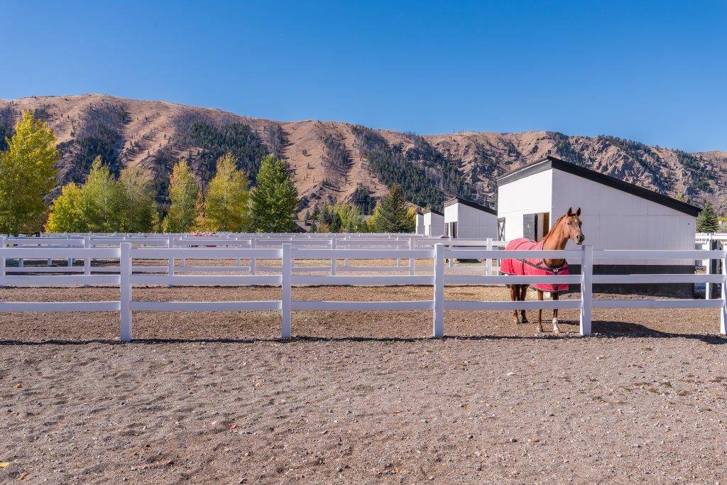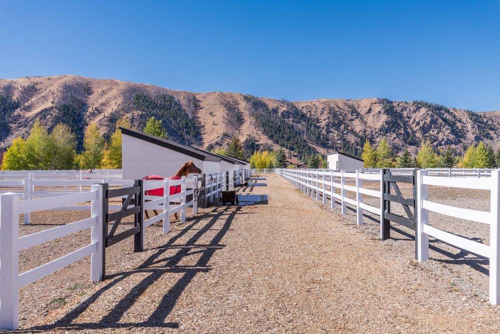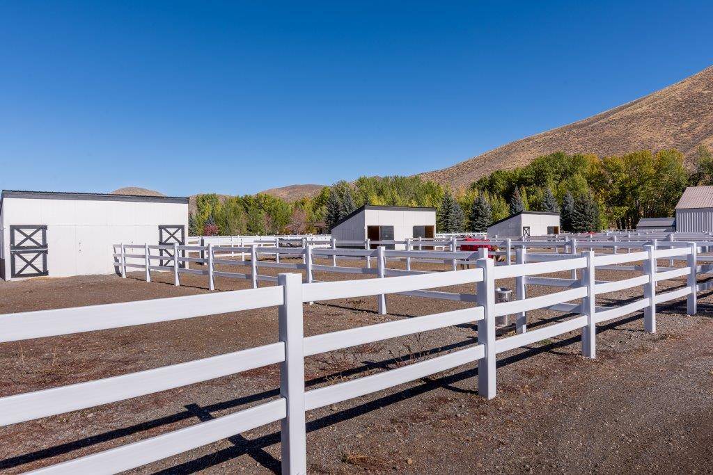 Incredibly well located and finished to the highest standards, this equestrian property has a beautifully outfitted main barn (with 6 indoor stalls, a kitchenette, gathering room, laundry room, bathroom and tack room), a 15,650 SF indoor riding arena with a viewing room and equipment storage area, an additional 6-stall barn, hay shed, 7 smaller barns and a large pond. Includes 14 acres water rights. The developed section of the property has 14 acres fully fenced and irrigated. On the backside of the property is 8 flat acres of undeveloped land that adjoins BLM land (perfect for an estate home & guest house).