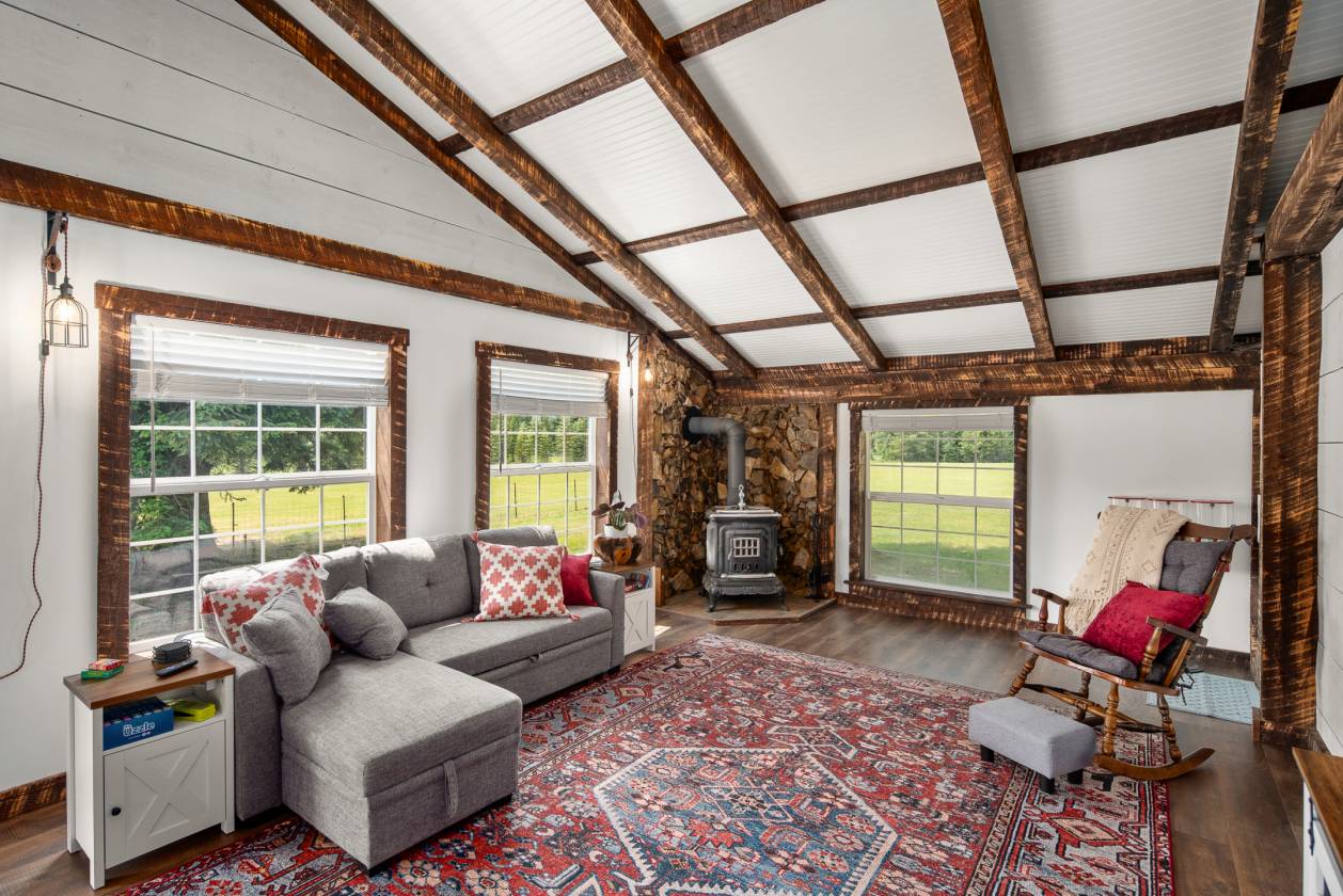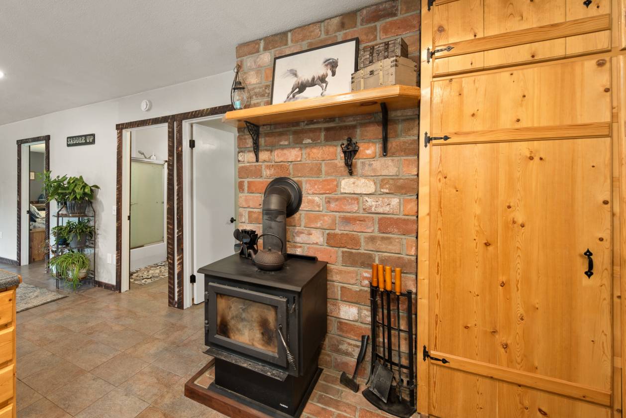 • 3 heat sources: propane fireplace, propane furnace, wood stoves