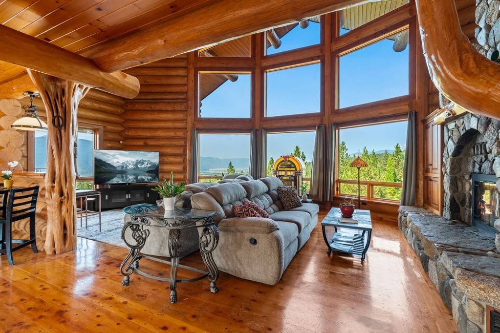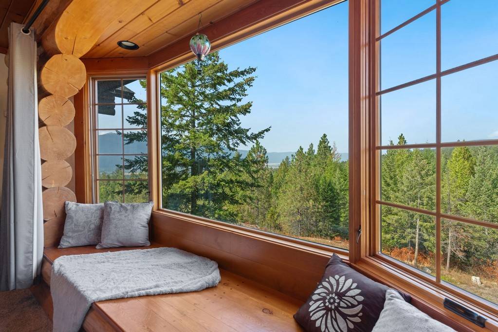 Extraordinary unique Caribou Creek Log Home set atop a dramatic granite outcrop. 28 private acres overlooking the breathtaking 360° views of the Kootenai River, this luxurious off-grid home blends timeless craftsmanship w modern sustainability. The 3-bed, 2 full + 2 half bath home features a massive stone fireplace, a gourmet kitchen w granite counters, and a glass-surround dining room; home features views and natural light from every room. A full-size elevator connects all three levels for convenience. Architectural details include hand-scribed logs, live-edge tree posts, and an “eagle’s nest” room wrapped w windows. Fully independent—off-grid, w state-of-the-art alternative systems and a 40 gpm well. Includes a 40x60 shop w wood heat, built-in shelving, and a loft; a generator shed; terraced rock landscaping; wraparound decks; and borders USFS. Plus a 960 sq ft 1 Bed/1 Ba guest cabin features a full kitchen, bath, and open loft, complete w generator, propane/wood heat, and septic.