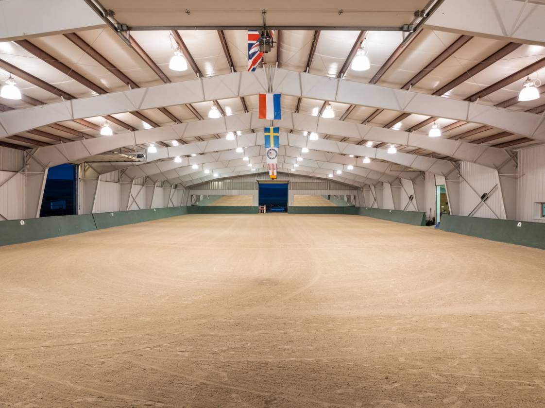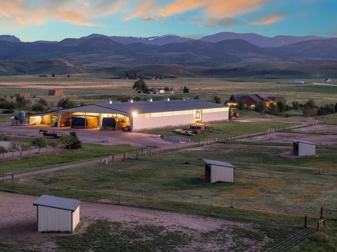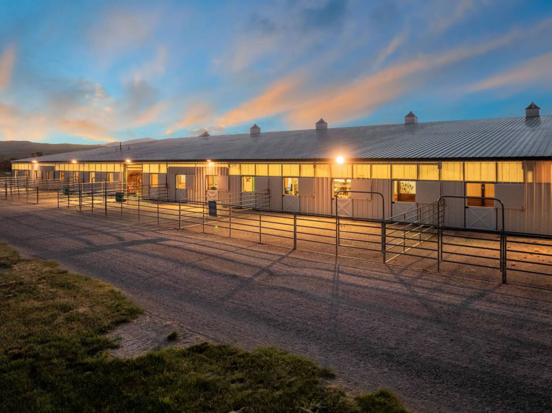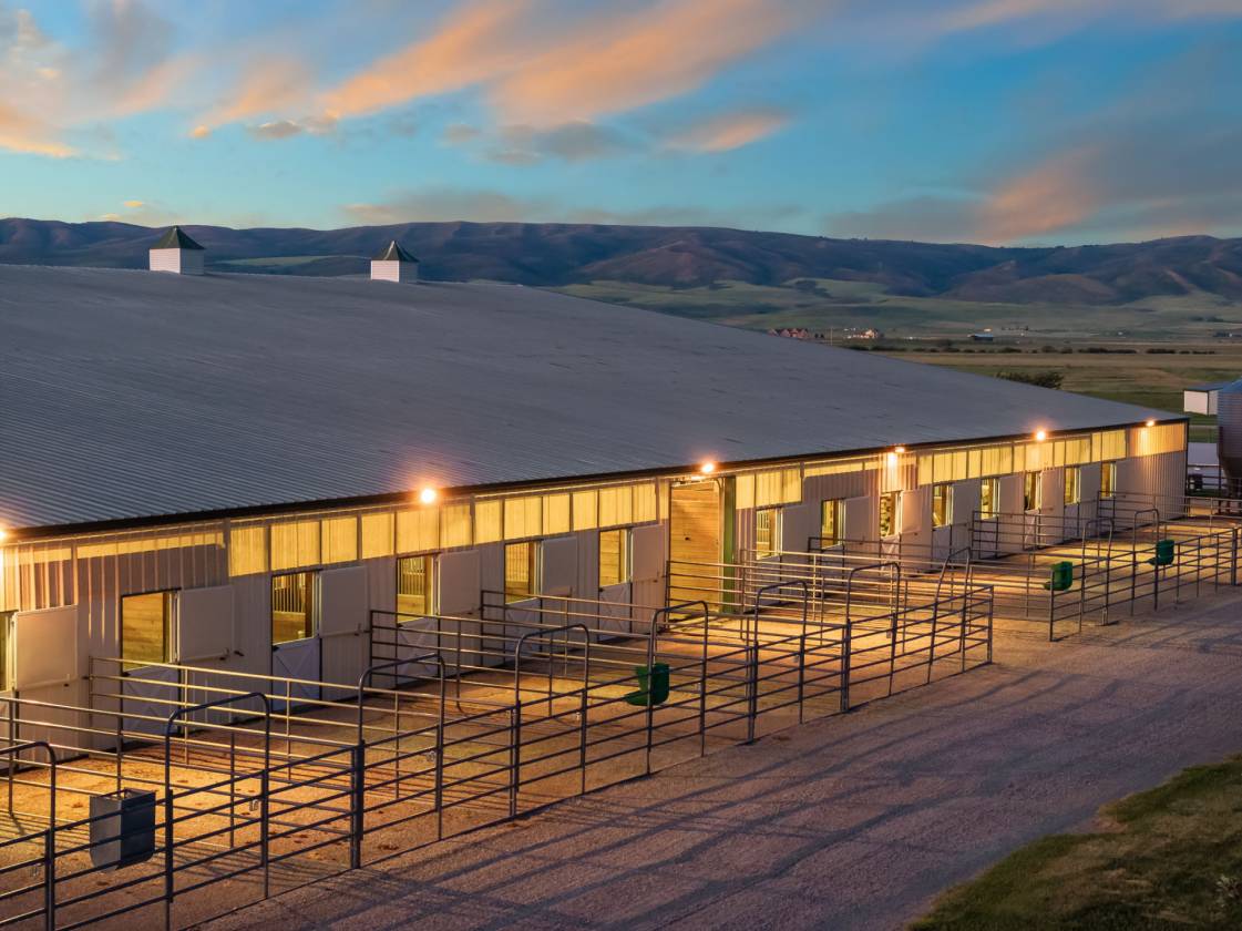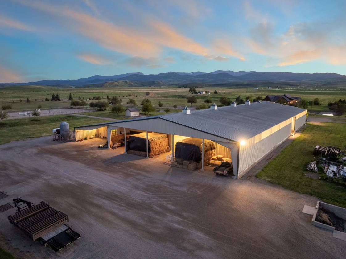 Knox Farm Equine Center, located in the charming small farming and ranching community of Chesterfield, Idaho, is a top-notch commercial equine training facility. Situated in the beautiful Gem Valley of southeastern Idaho, the estate covers a vast expanse of 80± acres, offering abundant room to ride, train, breed horses, or host competitions. The impressive 32,000-square-foot insulated barn and arena features eleven spacious stalls and various amenities such as a vet room and grooming/wash stall. There are also tack rooms, hay and equipment storage, and a one-bedroom apartment/bunkhouse/lounge with a fully equipped kitchen and viewing windows into the arena. The indoor arena is 100 feet X 204 feet with dust-free footing, a raised viewing area, a judge’s platform, and a sound system. Additionally, the property has two outdoor arenas, a shop area, and a one-acre pond. Forty acres are currently in hay production.