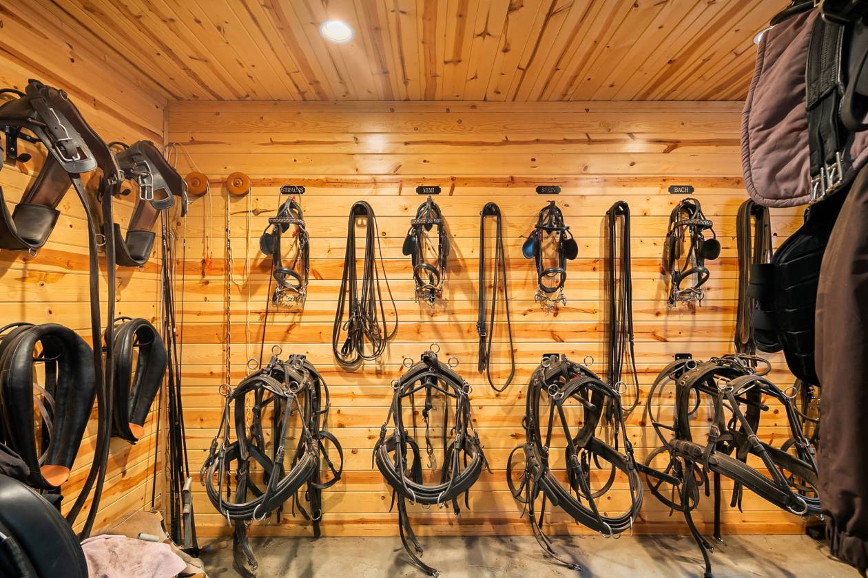 - Heated tack room with tongue & groove pine