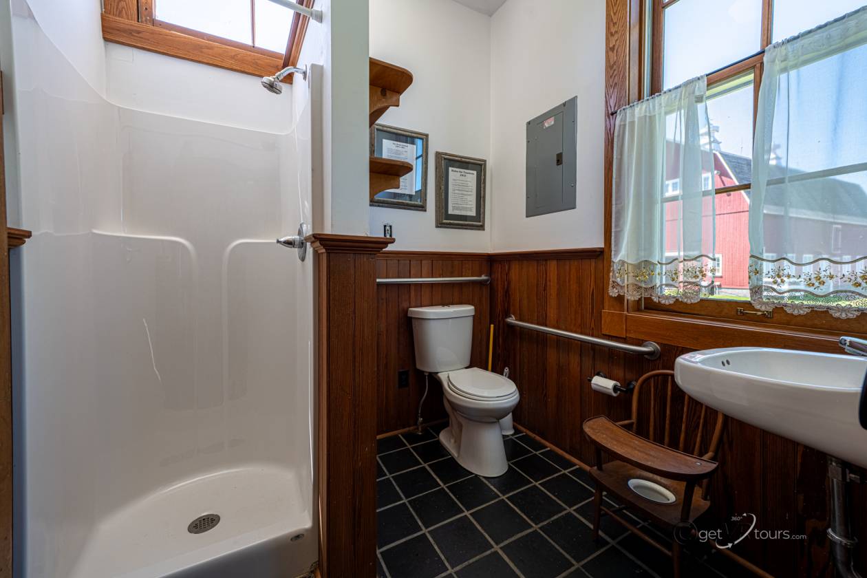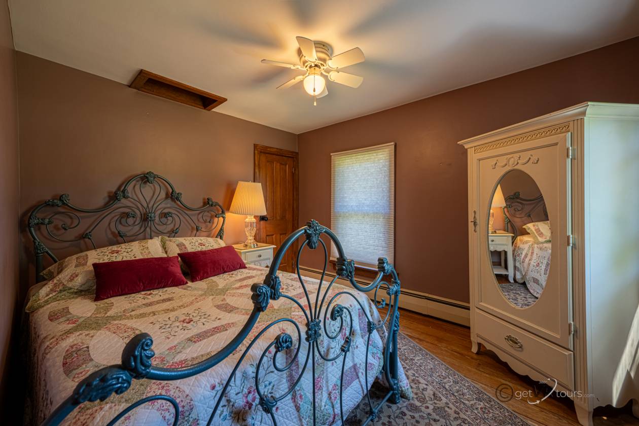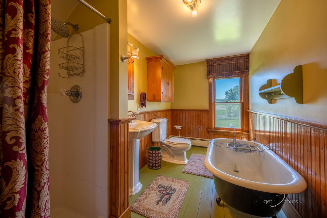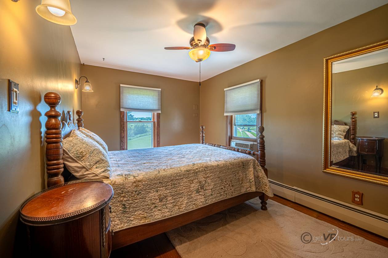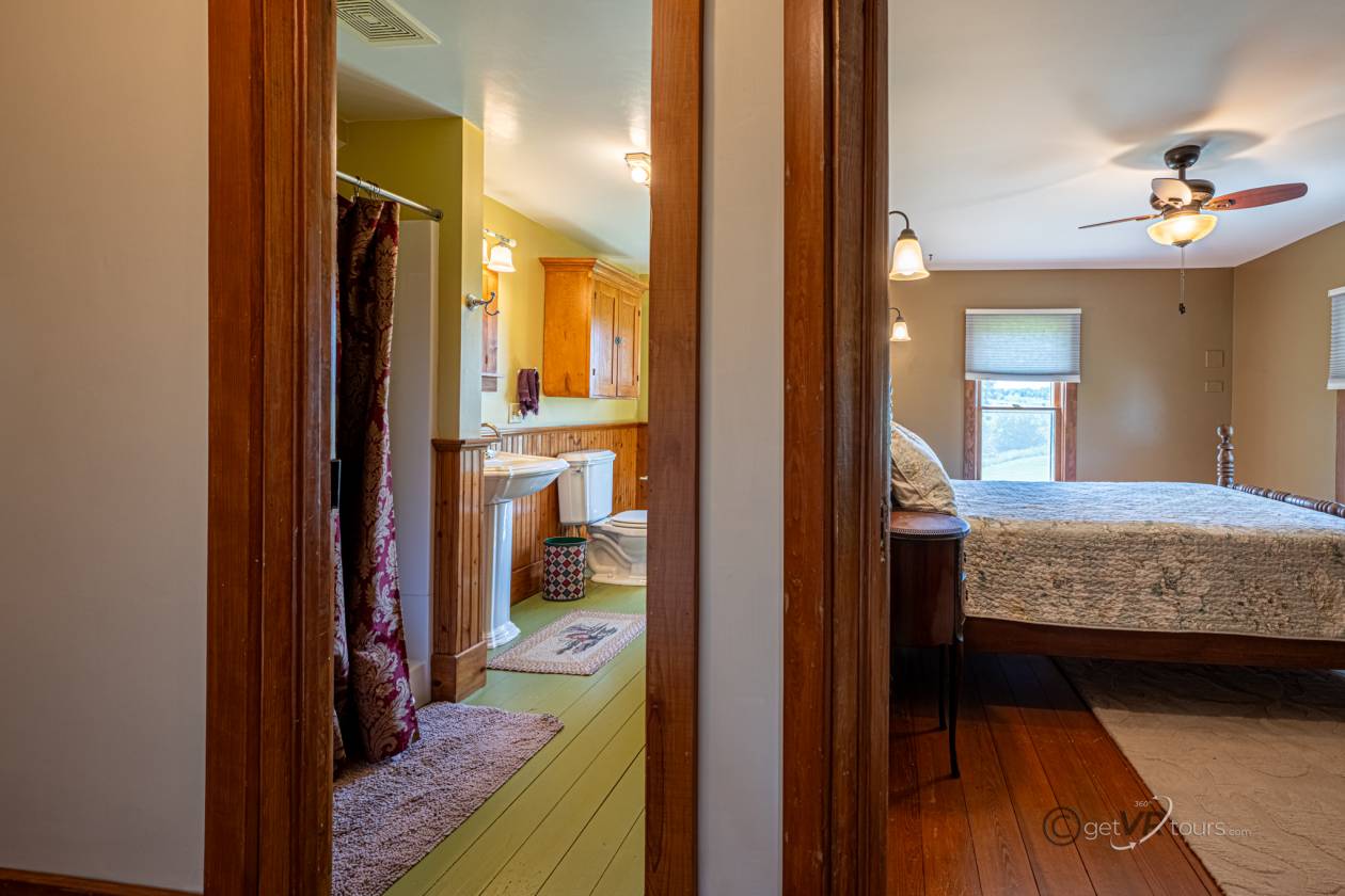 - The four bedrooms, 2.5 bath 1900's farmhouse has been preserved to keep its country style. Entering the front porch to the interior of the home, there are original hardwood floors are throughout the main level. Walk into the spacious dining room area, off to the left is the living room and master bedroom with private full bath. Kitchen is off the rear of the house, which also offers main level laundry, making this rustic beaut main level living. Upstairs are three more guest bedrooms, with a full bathroom servicing them. A storage room is off the upper bath. Off the kitchen is a screen in porch great for sitting and relaxing and taking in the beauty. This property just keeps on impressing, with the original Derinda Center Town Hall which was also a schoolhouse int he day. School house is set up as a guest suite/quarters that offers a full bathroom, bedroom area and a large open area