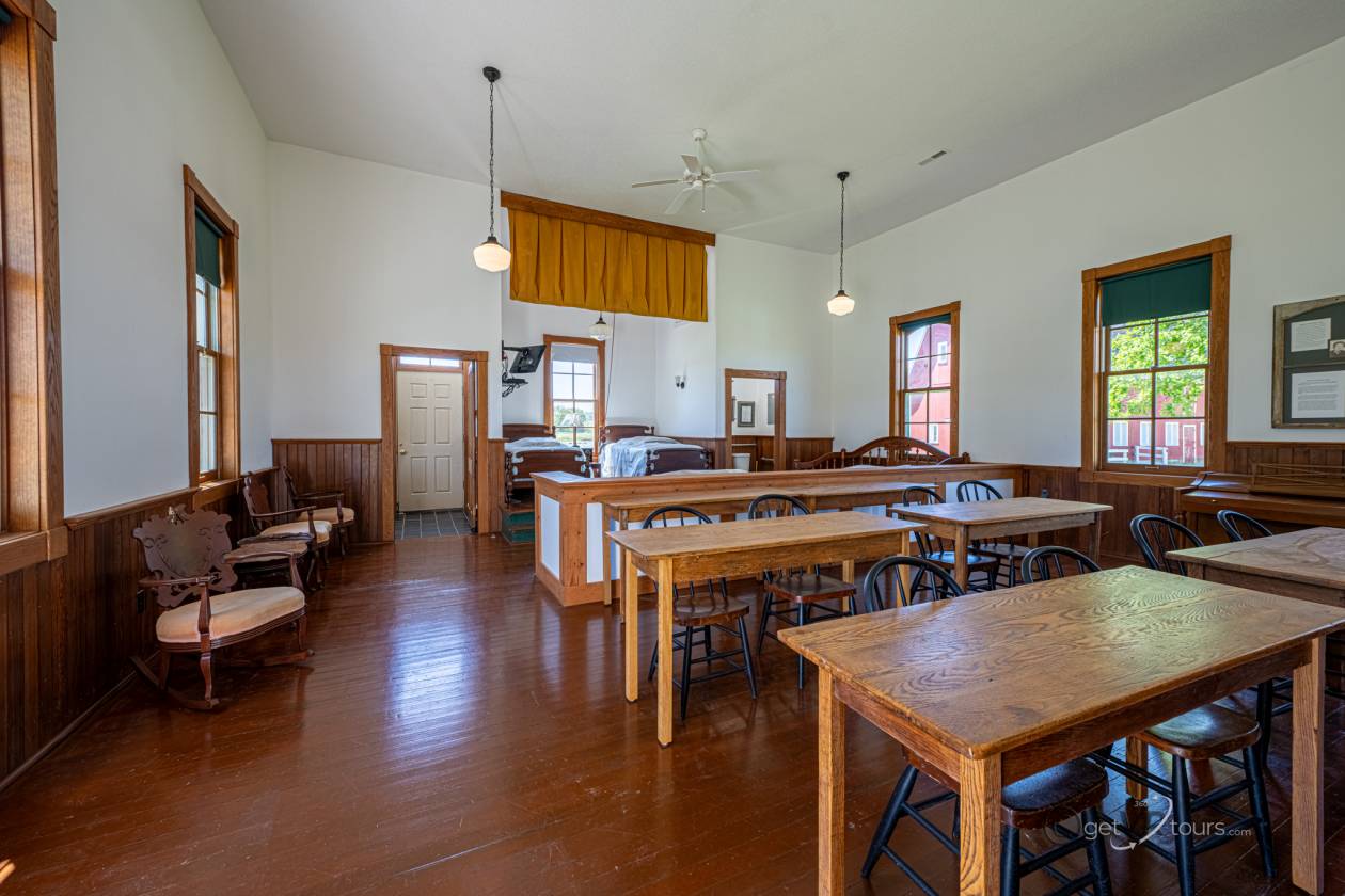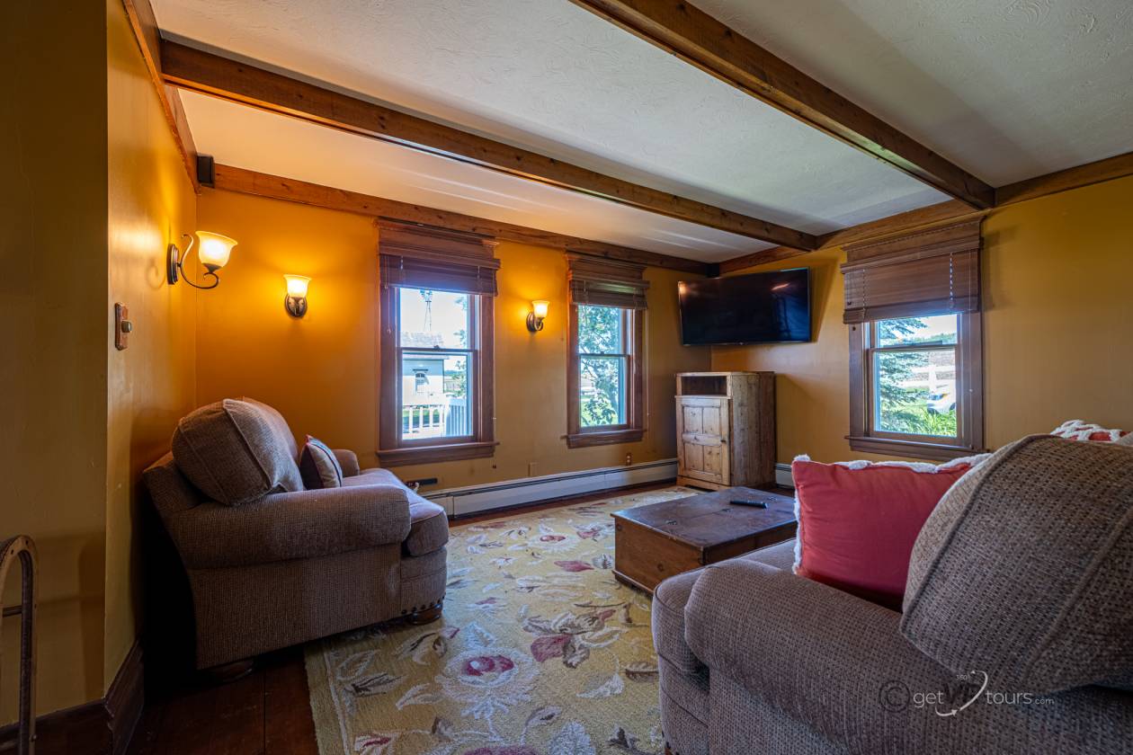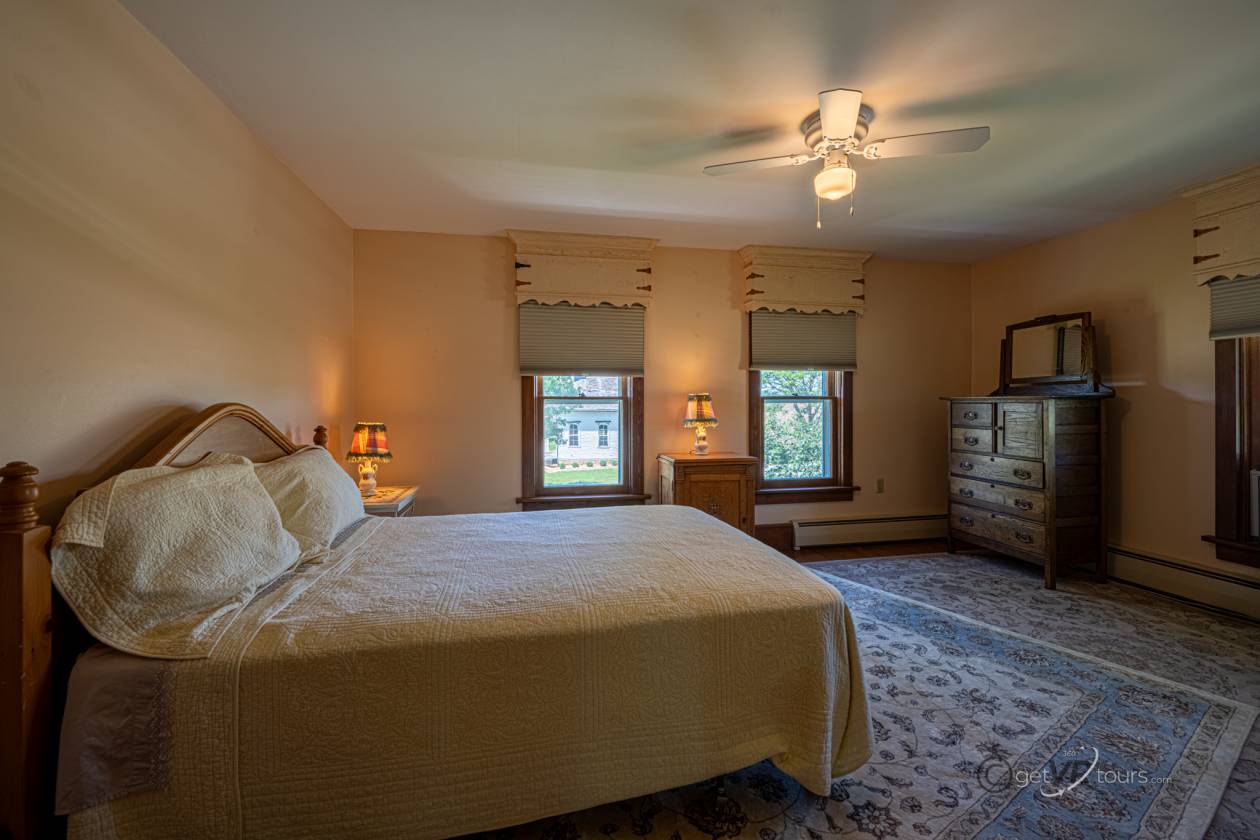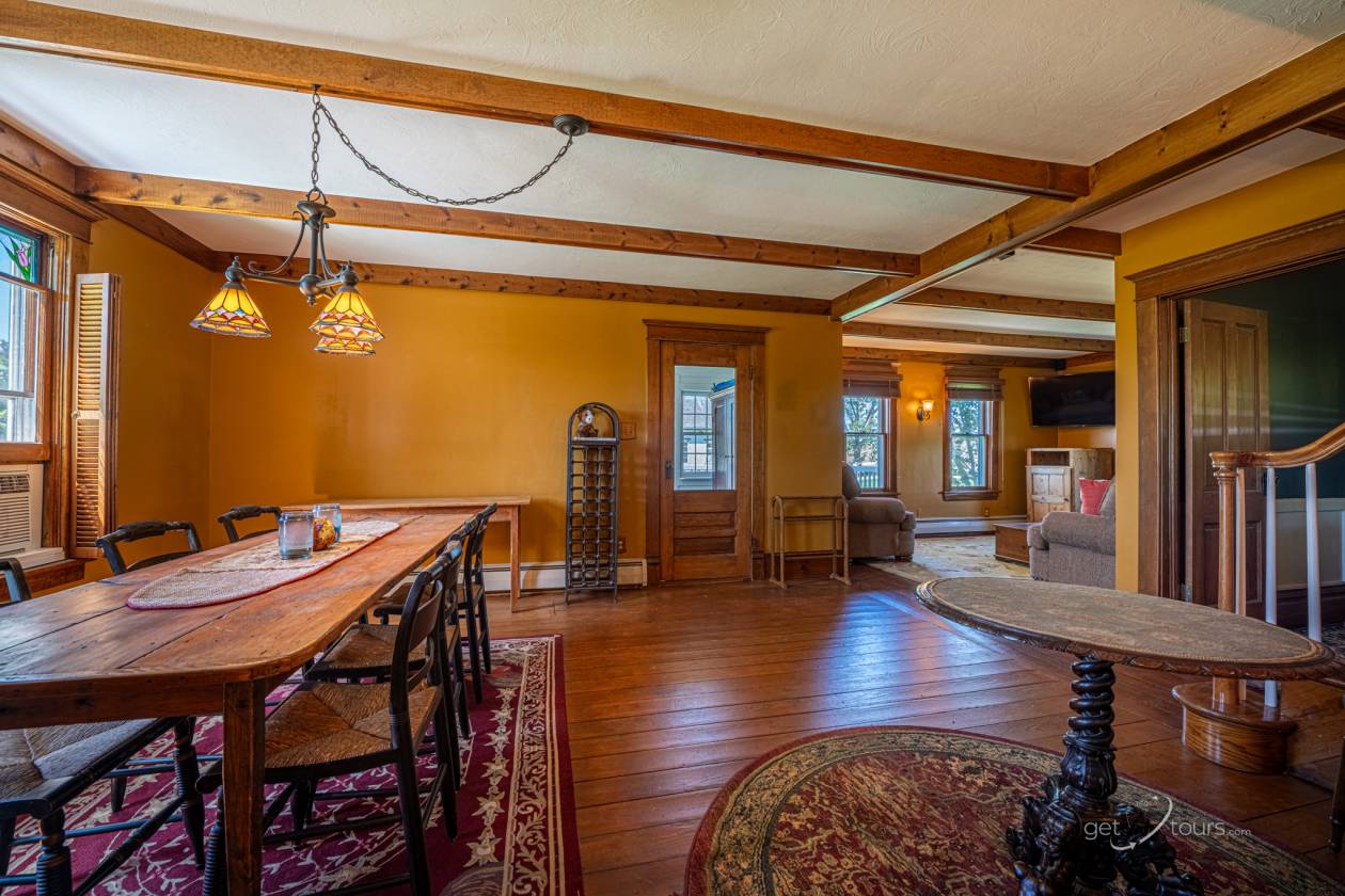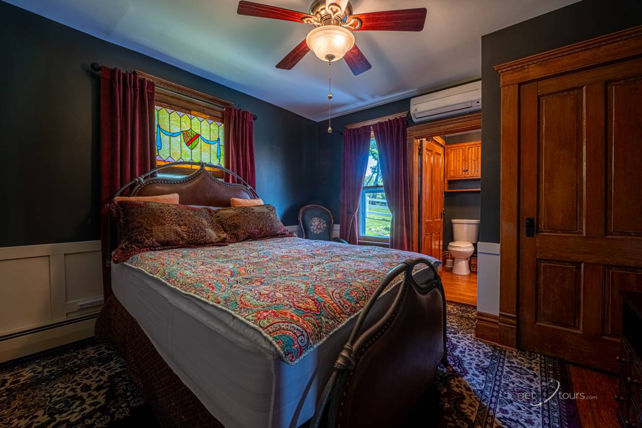 - The four bedrooms, 2.5 bath 1900's farmhouse has been preserved to keep its country style. Entering the front porch to the interior of the home, there are original hardwood floors are throughout the main level. Walk into the spacious dining room area, off to the left is the living room and master bedroom with private full bath. Kitchen is off the rear of the house, which also offers main level laundry, making this rustic beaut main level living. Upstairs are three more guest bedrooms, with a full bathroom servicing them. A storage room is off the upper bath. Off the kitchen is a screen in porch great for sitting and relaxing and taking in the beauty. This property just keeps on impressing, with the original Derinda Center Town Hall which was also a schoolhouse int he day. School house is set up as a guest suite/quarters that offers a full bathroom, bedroom area and a large open area