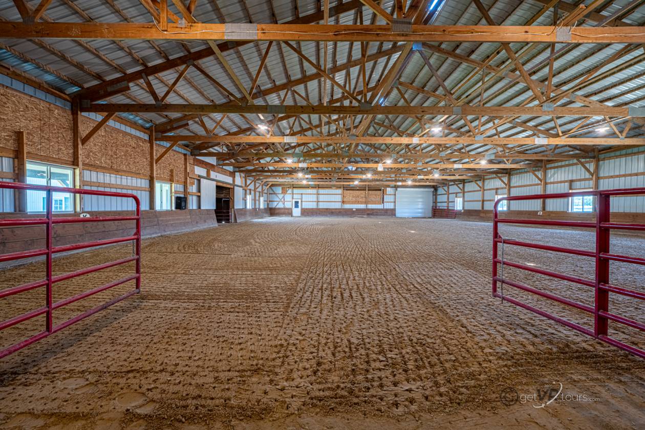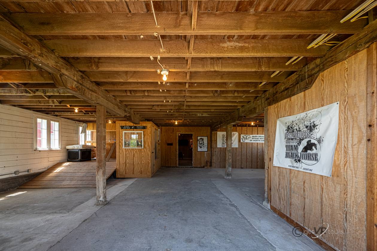 - Attention to detail to the infrastructure is evident throughout this well-manicured and maintained equine paradise. To set the scene, you will be arriving to the main gate of the property, that leads down a long white fenced lane. Off to the right is the outdoor arena area approximately 150' x 100', along with several horse jumping course that begins at the outdoor arena to the paddocks and behind the historic 2-story farm home. Off to the right of the lane is the impressive multi-building structures showcasing a well-groomed 6800 square foot indoor riding arena, (7) stables, of four that have ceiling fans and heaters, equipment storage for all the equipment needed to keep this meticulous equine property in pristine condition. Moving along from the arena area to the original part of the barn, there's the thoughtfully laid out tack room that offers 4 lockers with saddle hangers, full bathroom, laundry, semi-kitchenette with desk, sink, microwave and refrigerator. Oh, but wait-there's more: a trophy room is off the tack room to showcase your trophies, awards, and other special moments that makes your equine journey so special. A workspace area is additional storage of feeding, watering supplies and general supplies that are needed to keep this beauty in tip top shape! A half bathroom is located on the main level of the loft barn.