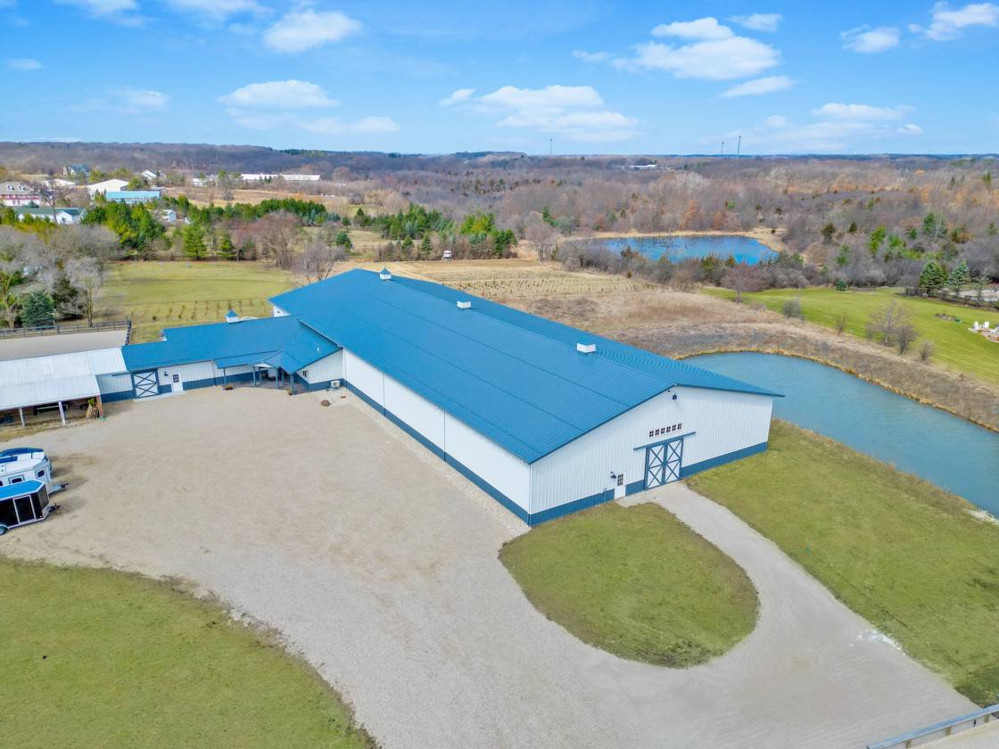Stunning State of the Art Equestrian Facility on 15 beautiful acres with Ag Zoning! 21 stall (ability to add more if needed!), heated stable connected to BRAND NEW indoor riding arena (Morton Building 80x200x16) with GGT Equestrian Footing for elevated performance and safety. Brand new Viewing Room (Heated & AC), Tack Room, Wash and Ferrier Stalls, Heated Laundry and Bath Rooms. BRAND NEW Outdoor Riding Arena (100x200) with sprinkler system and GGT Footing. Bunk House to sleep 5 with break room and kitchenette. Metal Hay Barn (40x60). 7 Grass Paddocks and 2 All-Weather Paddocks. Completely upgraded infrastructure-new well, septic, electrical and retention ponds per county code. PLUS a beautiful updated RANCH style home for yourself or your trainer/manager with fully finished basement with bedroom/bathroom! Don't miss this exquisitely updated farm where every detail has been thought of! Dreaming of your own stable? THIS is the ONE!