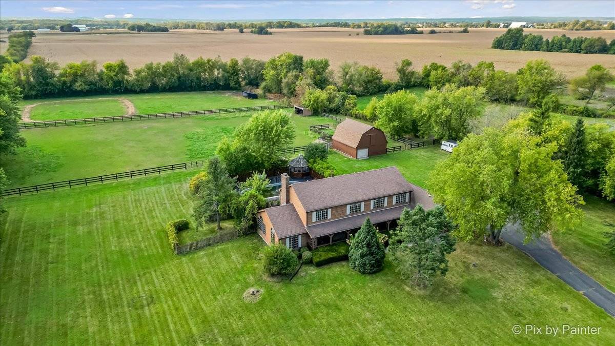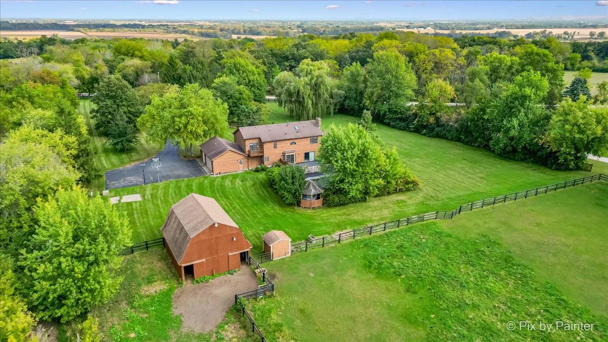 Fabulous 3 acre Estate ready for Horses! Lovely 1989 Cedar home with 4 BR, 3 1/2 baths, 3 car gar, finished basement, cemented crawl space, separate basement access and much more! MAIN FLOOR FEATURES: Spacious Living room with Bay window, Casablanca Fans, 1st floor bedroom, full bath, half bath, 2-sided brick fireplace with sunny den, Kitchen & Breakfast nook with ceramic tile, granite counters, Stainless & black appliances, new kitchen hardware, Dining room with Bay window and hardwood flooring, separate laundry room w/pull-down ironing board. SECOND FLOOR FEATURES: Amazing Master Bedroom Suite with Casablanca ceiling fan & vaulted ceiling, Fabulous Master Bath suite with Whirlpool tub, separate shower & dual sinks, 2 more bedrooms, Loft area & hall full bath. BASEMENT FEATURES: Rec room, workout room, storage room, utility room and separate access to garage. OUTDOOR FEATURES: Above ground pool with large deck, Gazebo, pool fountain, Cedar barn with run-in area & loft, chicken house, Shuck fence on paddock & pasture, inside hydrant. Three horses are allowed on the property. NOTE--Property is being split from larger parcel and sale is contingent on final approval of zoning change and parcel split expected in Dec. 2025.
